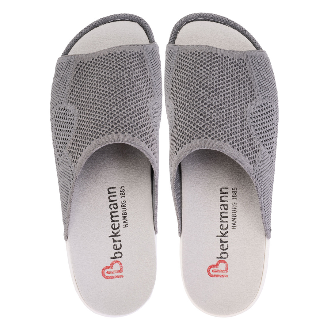Obuv Berkemann v odstínu „mövengrau“ (šedá) představuje spojení moderního designu a maximálního pohodlí. Svršek z inovativního pleteného materiálu ComfortKnit s technologií 3D AIRKNIT zajišťuje prodyšnost a flexibilitu, což přispívá k celodennímu komfortu. Vyjímatelná stélka s 5fázovým výměnným systémem Berkemann poskytuje optimální podporu chodidla a umožňuje použití individuálních ortopedických vložek. Lehká a pružná podrážka s výškou podpatku 27 mm a rozdílem mezi patou a špičkou 16 mm podporuje přirozený pohyb nohy. Obuv je dostupná v šířce G, což zajišťuje pohodlné nošení i pro širší chodidla.