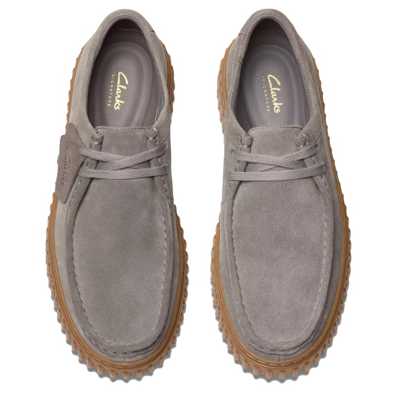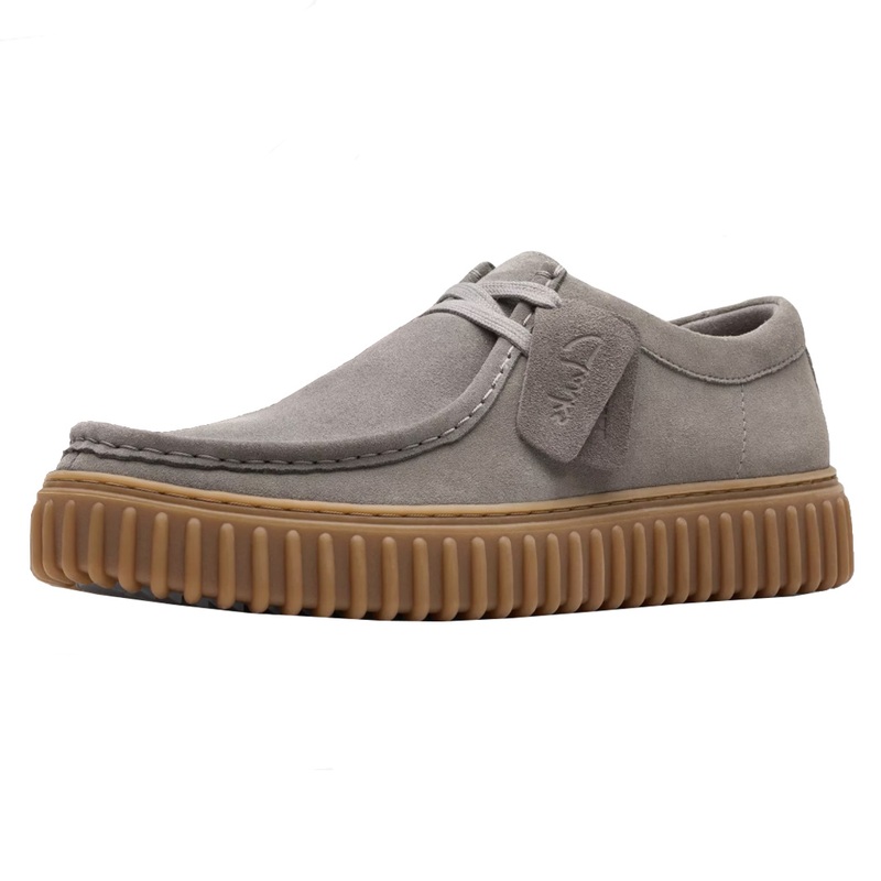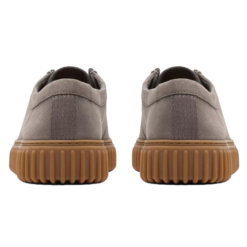 Obuv Clarks Torhill Lo v šedé broušené kůži představuje stylovou a moderní variantu volnočasové obuvi s retro nádechem. Svršek z kvalitního semiše je měkký, prodyšný a příjemně obepíná chodidlo. Výrazným designovým prvkem je robustní platformová podešev inspirovaná ikonickými modely Clarks z 90. let, která zároveň poskytuje skvělou stabilitu a pohodlí. Díky klasickému šněrování si botu snadno přizpůsobíš podle svých potřeb, a vnitřní měkká stélka s tlumením přispívá k celodennímu komfortu. Podešev z lehkého, ale odolného materiálu má dobré tlumicí vlastnosti a protiskluzový vzorek, což zajišťuje bezpečný krok na různých površích. Tento model je ideální pro městský styl – spojuje originální vzhled s pohodlím, které oceníš každý den.