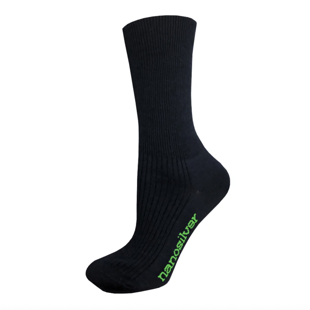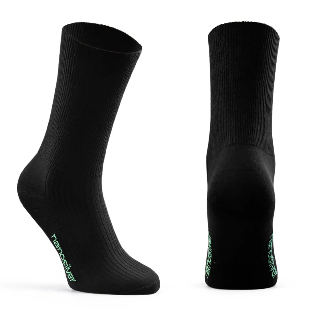 Tyto zdravotní ponožky se stříbrem NanoSilver jsou navržené pro maximální pohodlí a každodenní nošení bez nepříjemného tlaku. Díky volnému, nestahujícímu lemu jsou vhodné i pro citlivé nohy, při otocích nebo pro osoby, které tráví dlouhou dobu na nohou. Materiál je příjemný na dotek, dobře prodyšný a pomáhá udržovat chodidla v suchu a komfortu po celý den. Použití stříbra NanoSilver zajišťuje antibakteriální účinek, který omezuje množení bakterií a tím i vznik zápachu. Ponožky účinně odvádějí vlhkost a přispívají k lepší hygieně nohou, což oceníte zejména při celodenním nošení. Jsou vhodné jak pro běžné denní použití, tak i pro osoby s citlivější pokožkou, které hledají funkční a pohodlné řešení bez kompromisů.