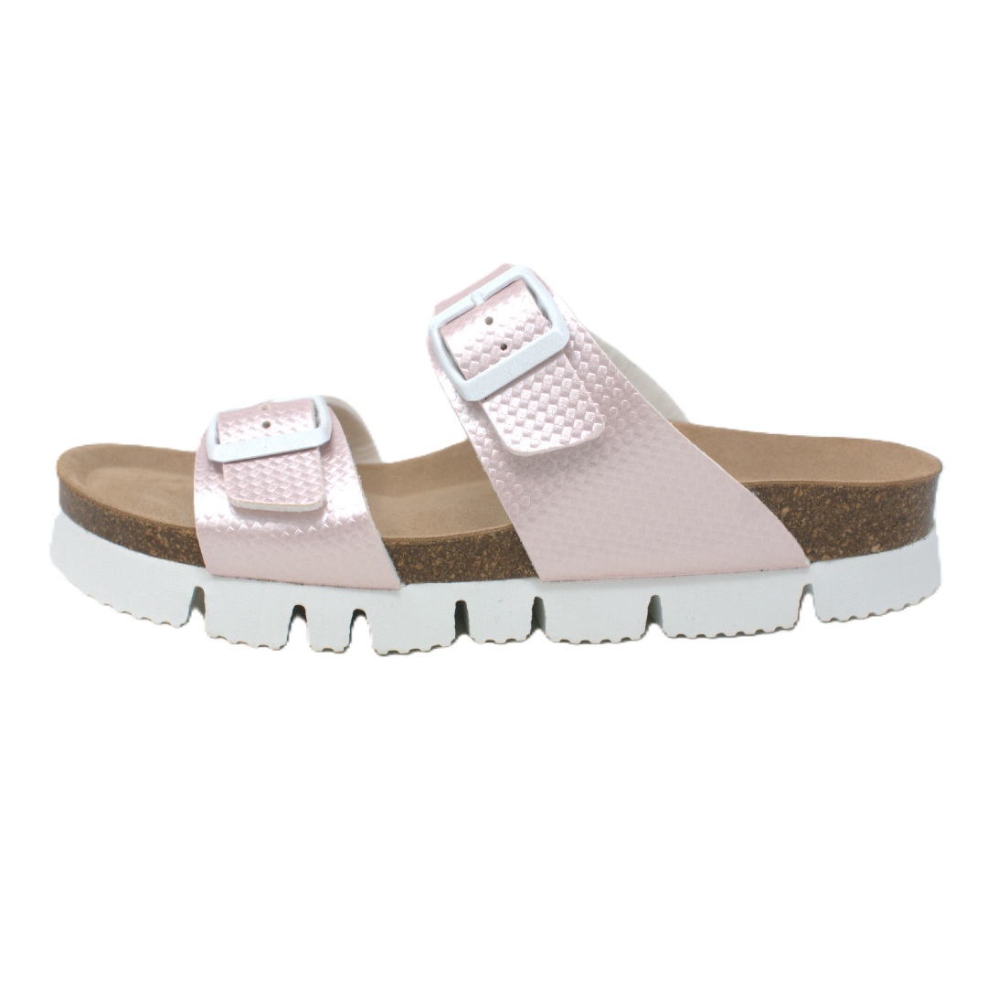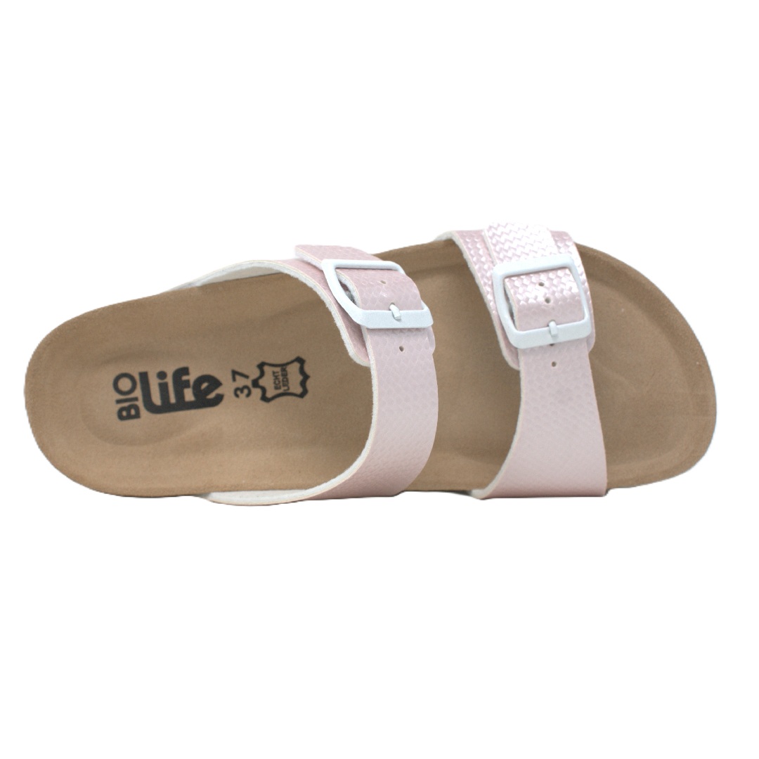 Dámská obuv Bio Life je lehká letní obuv navržená s důrazem na pohodlí a přirozenou ergonomii chodidla. Svršek je vyroben z kvalitního syntetického materiálu s jemnou strukturou a decentním leskem, který je příjemný na nošení a snadno se udržuje. Anatomicky tvarovaná stélka není vyjímatelná, ale konstrukce obuvi umožňuje ortopedickou úpravu dle individuálních potřeb. Podešev je typická korkovo-latexová platforma, která zajišťuje stabilitu a přirozené rozložení váhy při chůzi. Spodní část tvoří lehká syntetická podrážka s výrazným vzorkem pro lepší přilnavost a tlumení došlapu. Šířka obuvi odpovídá běžnému standardu, špička je otevřená a dostatečně prostorná pro komfort prstů. Obuv se doporučuje chránit před vlhkostí a čistit jemně vlhkým hadříkem nebo přípravky určenými na syntetické materiály. Při správné péči si zachová svůj vzhled i funkčnost po dlouhou dobu.