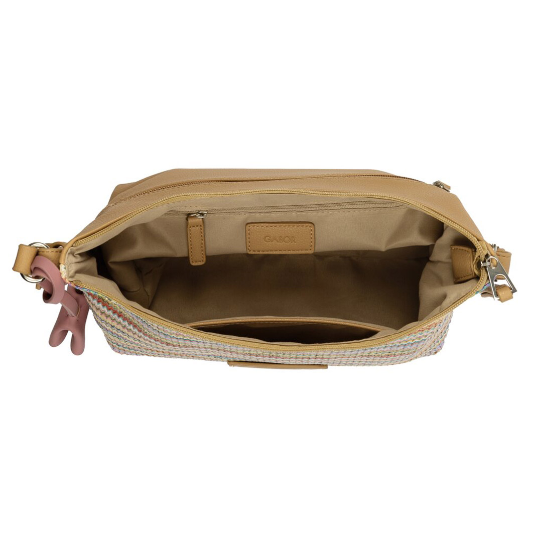 Kabelka Gabor Schultertasche Anisa Multicolour je výrazný módní doplněk, který kombinuje barevné detaily s praktickým provedením vhodným pro každodenní nošení i volnočasové aktivity. Svrchní materiál je kvalitní syntetika s hladkým a texturovaným povrchem, který je odolný vůči běžnému opotřebení a snadno se udržuje. Barevné provedení působí živě a současně stylově, což kabelce dodává osobitý charakter vhodný k různým outfitům. Hlavní prostor kabelky se uzavírá na zip, který bezpečně ochrání obsah před vypadnutím. Uvnitř najdete prakticky řešené kapsy pro uložení drobností, jako jsou klíče nebo mobil, které pomáhají udržet pořádek. Kabelka je opatřena nastavitelným ramenním popruhem, který umožňuje pohodlné nošení přes rameno nebo crossbody podle potřeby. Pro zachování vzhledu a dlouhou životnost se doporučuje kabelku čistit jemným vlhkým hadříkem a chránit ji před dlouhodobým působením vlhkosti a přímým slunečním zářením.