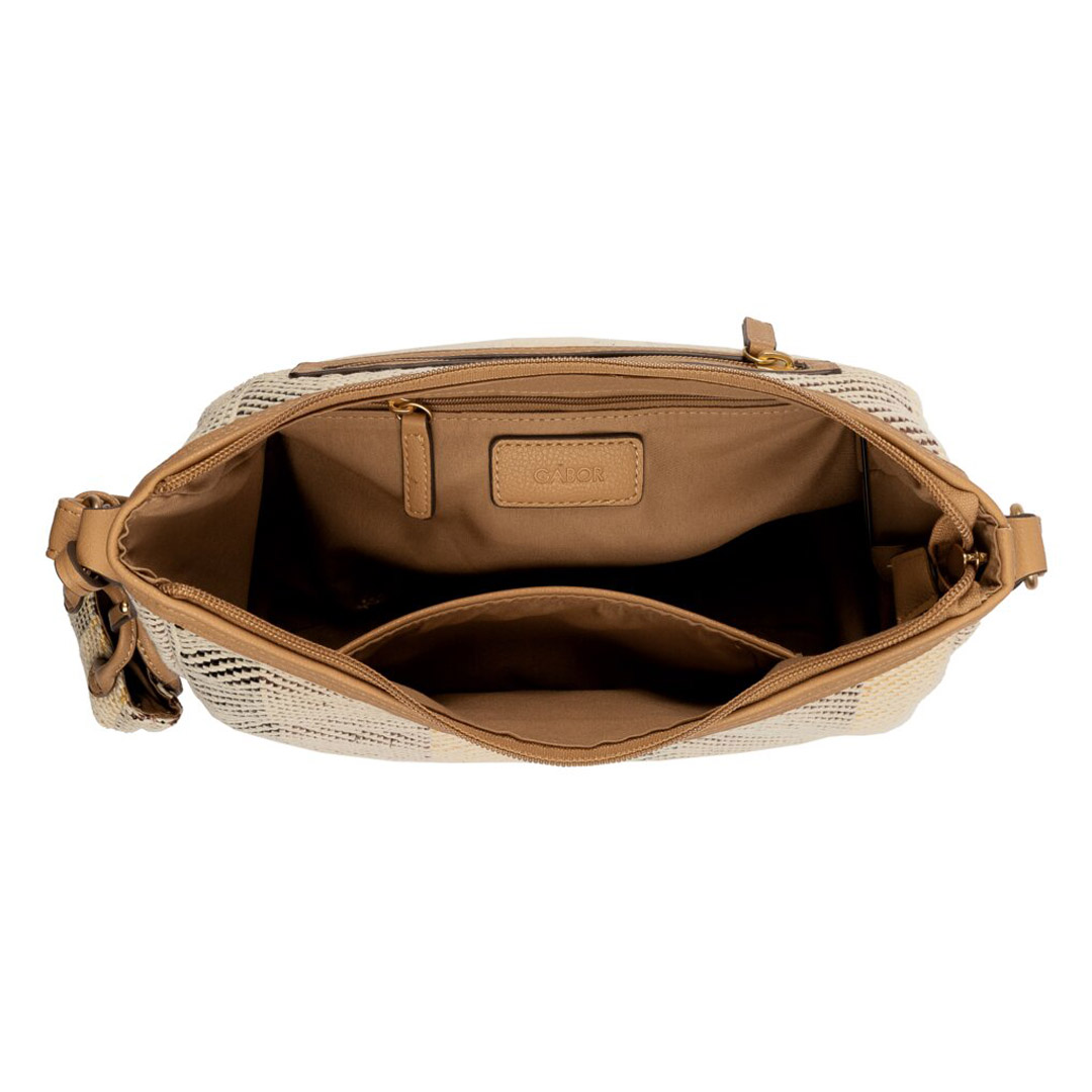 Kabelka Gabor Granada Denada v béžovém provedení je stylovým a zároveň praktickým doplňkem vhodným pro každodenní nošení i volnočasové aktivity. Je vyrobena z kvalitního syntetického materiálu s hladkým povrchem a jemnou texturou, která působí elegantně a je snadno udržovatelná. Design kabelky je nadčasový a díky světlému tónu v kombinaci s decentními detailami se hodí k mnoha outfitům. Hlavní prostor kabelky se uzavírá na zip, což zaručuje bezpečné uložení obsahu. Uvnitř se nachází praktické členění včetně vnitřních kapes na drobnosti, které usnadňují organizaci osobních věcí, jako jsou peněženka, telefon nebo klíče. Kabelka je doplněna nastavitelným ramenním popruhem, který umožňuje pohodlné nošení přes rameno nebo crossbody podle aktuální potřeby. Pro zachování vzhledu a dlouhou životnost se doporučuje kabelku čistit jemně navlhčeným hadříkem a chránit ji před přímým působením vlhkosti či intenzivním slunečním zářením.