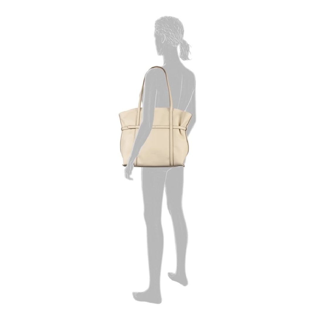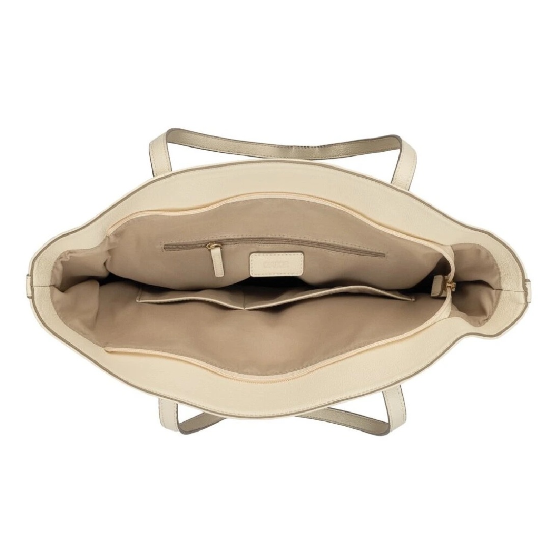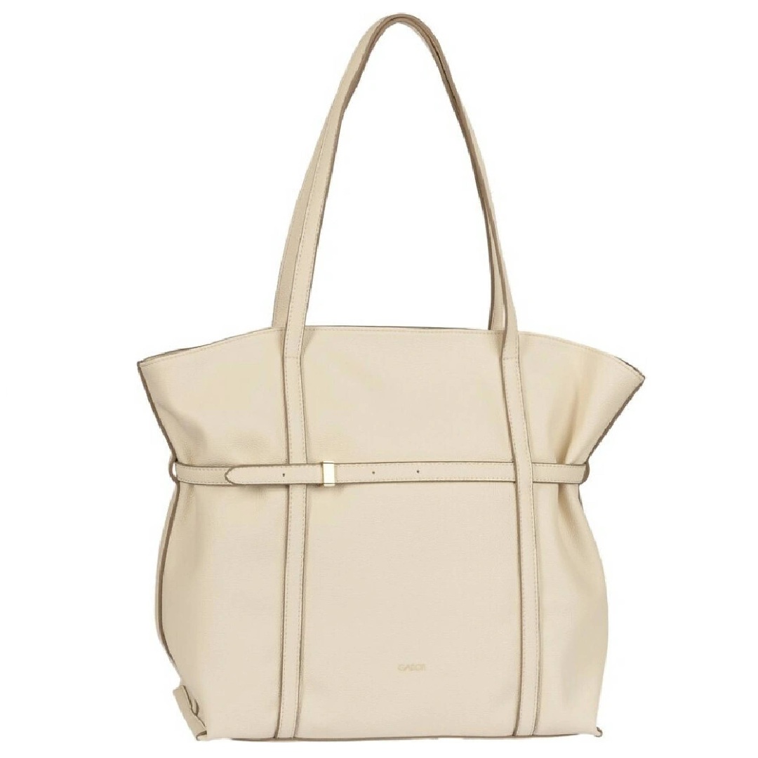 Kabelka Gabor v barvě off white je elegantním a praktickým doplňkem pro každodenní nošení. Je vyrobena z kvalitního syntetického materiálu s jemnou strukturou, který vzhledem připomíná hladkou kůži, je odolný a snadno se udržuje. Světlý neutrální odstín působí nadčasově a snadno se kombinuje, kabelka je vhodná, ať už do práce, do města nebo na volný čas. Model je proveden ve velikosti L, nabízí dostatek prostoru pro běžné denní nezbytnosti a přehledně řešený vnitřní prostor s kapsou na zip pro uložení drobností. Další praktická kapsa na zip se nachází na zadní straně kabelky. Dlouhá ramínka umožňují pohodlné nošení přes rameno, zatímco decentní kovové detaily dodávají kabelce elegantní vzhled bez zbytečné okázalosti. Rozměrově má kabelka na výšku 13,5 cm na šířku 34 cm a na délku 43 cm.