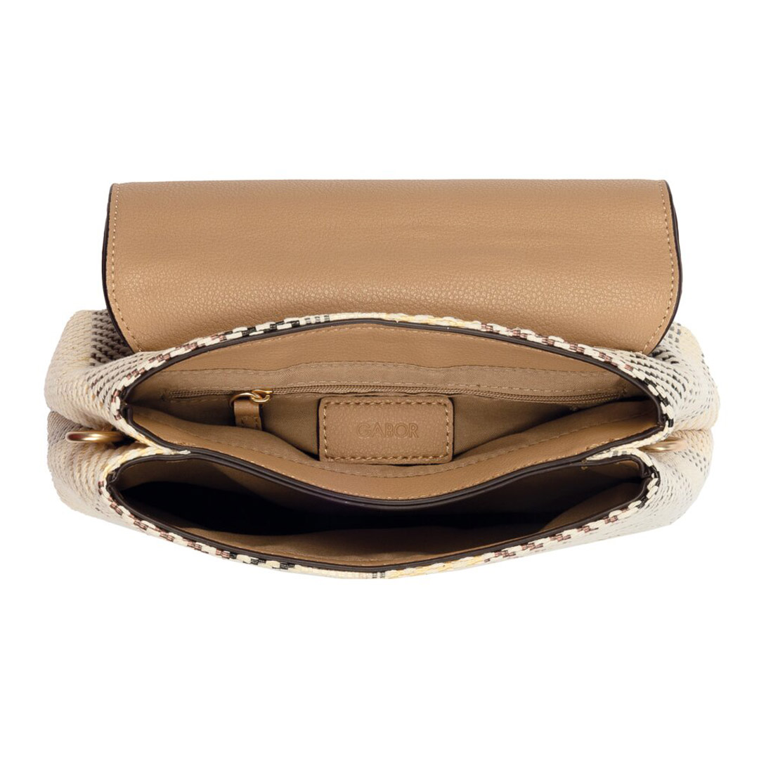 Kabelka Gabor Sahar Multicolour je stylovým doplňkem, který kombinuje hravé barevné prvky s praktickým designem vhodným pro každodenní nošení i zvláštní příležitosti. Je vyrobena z kvalitního syntetického materiálu s hladkým i texturovaným povrchem, který působí elegantně a je zároveň odolný vůči běžnému opotřebení. Kabelka má strukturovaný vzhled s barevnými akcenty, je prostorná a zároveň kompaktní, což zajišťuje pohodlné nošení i dobré uspořádání věcí. Hlavní prostor kabelky se uzavírá na zip a je dostatečně velký pro každodenní potřeby – od peněženky, telefonu a klíčů až po menší osobní doplňky. Vnitřní členění zahrnuje kapsy, které pomáhají udržet pořádek a snadný přístup k drobnostem. Dlouhé ramenní ucho umožňuje pohodlné nošení přes rameno, a díky univerzální velikosti a tvarem ladí kabelka k široké škále outfitů – od volnočasových až po elegantnější styly. Pro údržbu se doporučuje jemné čištění vlhkým hadříkem a vyhnout se dlouhodobému působení vlhkosti nebo ostrému slunečnímu záření, aby si kabelka zachovala svůj vzhled a kvalitu materiálu po dlouhou dobu.