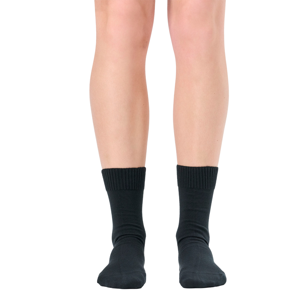 Ponožky 100 % Cotton zdravotní v černé barvě jsou navrženy pro každodenní nošení s důrazem na komfort a přirozený pocit na pokožce chodidel. Díky klasickému střihu dobře sedí na noze a poskytují příjemný pocit měkkosti a volnosti během celého dne. Tento model je vhodný jak pro běžné aktivity, tak i pro použití v pracovní obuvi nebo doma, kde oceníte jejich jednoduchost a pohodlí bez zbytečného sevření. Materiál tvořený ze 100 % bavlny zajišťuje výbornou prodyšnost a přirozenou schopnost absorbovat vlhkost, což pomáhá udržet nohy v suchu a pohodlí i při delší zátěži. Elastické vlastnosti úpletu umožňují, aby ponožky držely tvar a pevně seděly na noze i po opakovaném praní, a přispívají tak k jejich trvanlivosti. Zdravotní provedení je vhodné pro všechny, kdo hledají pohodlné a šetrné ponožky, které podporují komfort nohou během celodenního nošení.