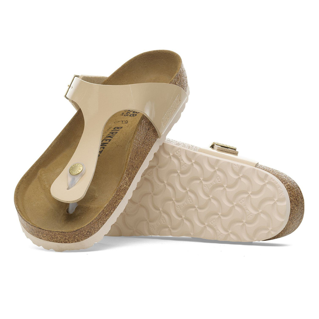 Birkenstock Gizeh v patentované úpravě Birko-Flor® je ideální volbou pro ženy, které hledají spojení elegance a pohodlí. Svršek je vyroben z odolného materiálu Birko-Flor® s lesklým povrchem, který dodává obuvi moderní a sofistikovaný vzhled. Tento materiál je nejen esteticky příjemný, ale také snadno udržovatelný, což z něj činí praktickou volbu pro každodenní nošení. Anatomicky tvarovaná stélka, která je charakteristická pro všechny modely Birkenstock, zajišťuje vynikající podporu a komfort i při celodenním nošení. Díky nastavitelnému pásku s kovovou přezkou si můžete obuv přizpůsobit přesně podle tvaru nohy, což zaručuje optimální stabilitu a pohodlí. Birkenstock Gizeh je skvělou volbou pro teplé letní dny, a to nejen pro každodenní nošení, ale i pro volnočasové aktivity, kde chcete spojit styl, komfort a dlouhotrvající pohodlí.