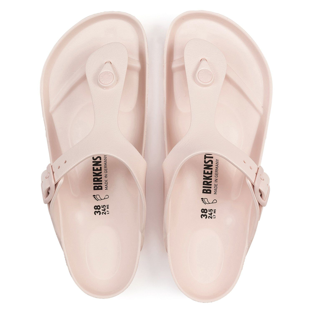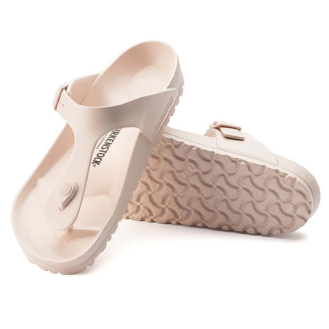 Birkenstock Gizeh EVA je lehká a flexibilní verze ikonické žabky, ideální pro letní dny. Celá obuv je vyrobena z jednoho kusu EVA materiálu, což zajišťuje voděodolnost a snadnou údržbu. Anatomicky tvarovaná stélka poskytuje pohodlí a podporu, zatímco podešev s vynikajícími tlumicími vlastnostmi zajišťuje pohodlný krok. Díky své lehkosti a odolnosti je Gizeh EVA ideální pro použití u bazénu, na pláži nebo ve wellness. Obuv je dostupná v různých barvách, což umožňuje snadné sladění s letním oblečením. S touto obuví si můžete užívat pohodlí a styl během teplých měsíců.