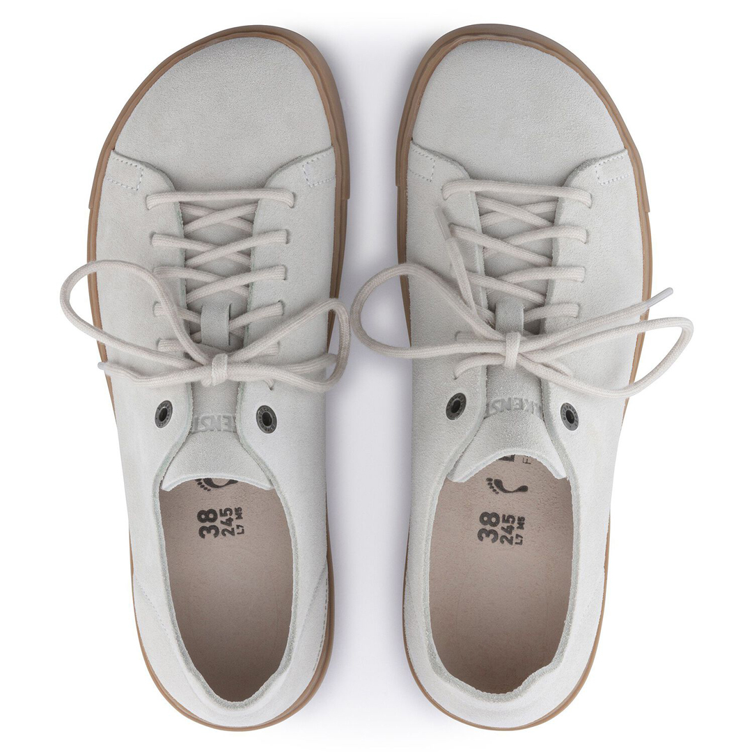 Obuv Birkenstock Bend Decon Low v odstínu Antique White představuje spojení minimalistického designu a vysokého komfortu, který je pro značku Birkenstock typický. Svršek těchto bot je vyroben z jemně broušené nubukové kůže, která je zpracována tak, aby její vnitřní strana získala sametově měkký povrch a stala se vnější částí obuvi. Tato technika dodává botám přirozený a elegantní vzhled. Uvnitř se nachází vyjímatelná anatomicky tvarovaná stélka z korku a latexu, která podporuje správné držení nohy a zajišťuje pohodlí při každém kroku. Podšívka z jemné kůže přispívá k příjemnému pocitu při nošení. Pružná podešev z přírodní gumy poskytuje dobré tlumení nárazů a stabilitu. Tyto boty jsou vhodné pro každodenní nošení a snadno se kombinují s různými styly oblečení.