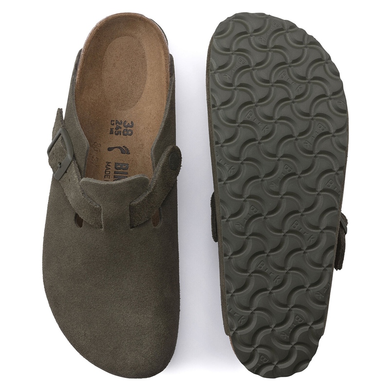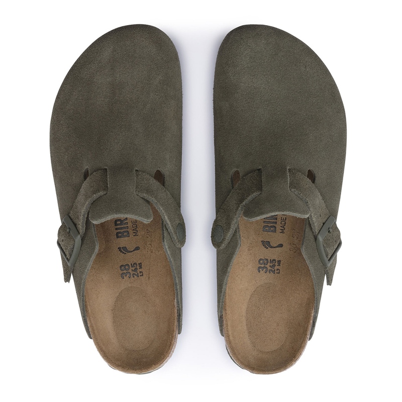 Pantofle Birkenstock Boston v odstínu Thyme představují elegantní a pohodlnou volbu pro každodenní nošení. Svršek je vyroben z jemného semiše, který se přizpůsobuje tvaru nohy a zajišťuje dlouhou životnost. Anatomicky tvarovaná stélka z korku a latexu poskytuje optimální podporu nožní klenby a pohodlí při chůzi. Lehká a pružná podešev z EVA materiálu tlumí nárazy a zajišťuje flexibilitu. Pantofle jsou vybaveny jedním nastavitelným páskem s kovovou sponou, který umožňuje individuální přizpůsobení. Tento model je ideální pro ženy, které hledají stylovou a zároveň pohodlnou obuv pro každodenní nošení.