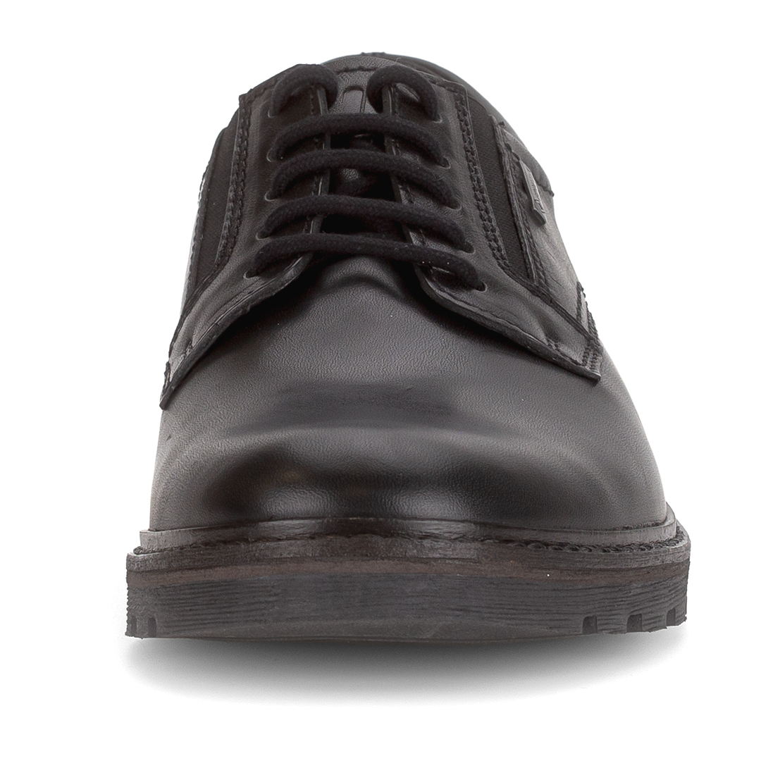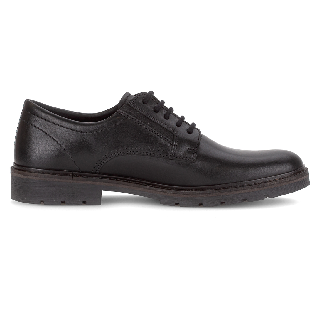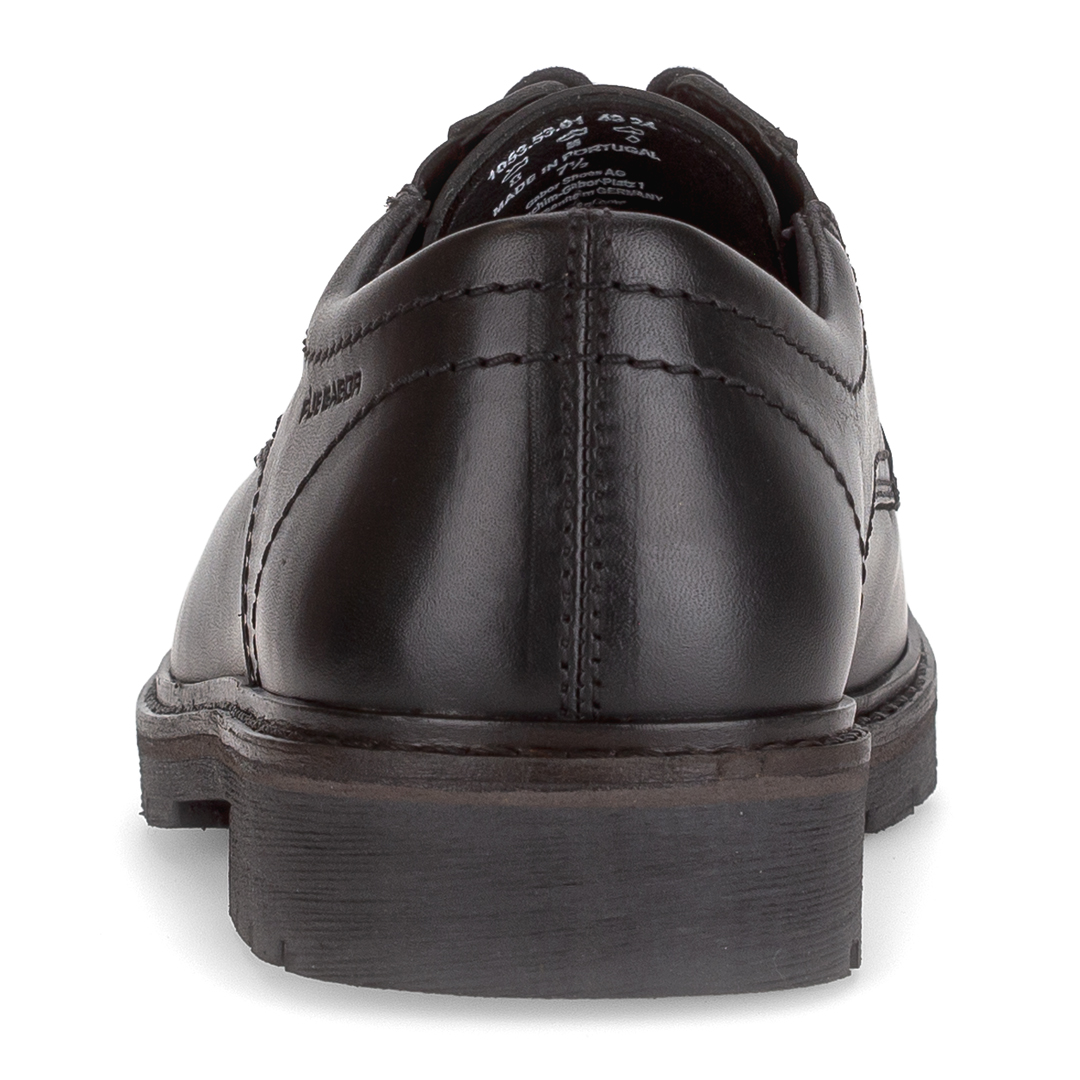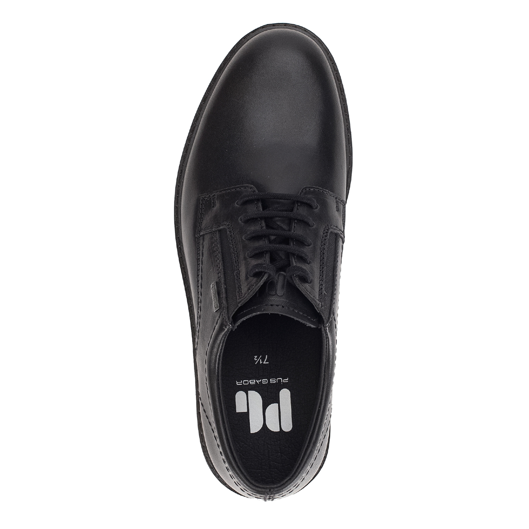 Obuv je vyrobena z hladké černé kůže, což dává botě elegantní, kultivovaný vzhled, který se hodí jak ke společenským, tak i formálnějším běžným outfitům. Má klasický šněrovací střih s kulatou špičkou, takže noha není stlačovaná ani při delším nošení. Podšívka je textilní, což pomáhá s odvodem vlhkosti a zvyšuje prodyšnost — nohám by tak mělo být pohodlně i při chůzi či při nošení celý den. Mezi praktickými vlastnostmi vyniká blokový podpatek vysoký cca 3 cm, což nabízí stabilní došlap a zároveň decentní zdvih bez přehnaného kopání nohy. Boty disponují vyjímatelnou latexovou stélkou vhodnou pro vložky, což je výhodné pro ty, kdo potřebují individuální řešení nebo chtějí stélku vyměnit kvůli hygieně. Kůže je činěná šetrným způsobem — boty jsou vyráběny v Evropě a použití certifikované kůže podle standardů Leather Working Group zaručuje ohled na ekologii výroby.