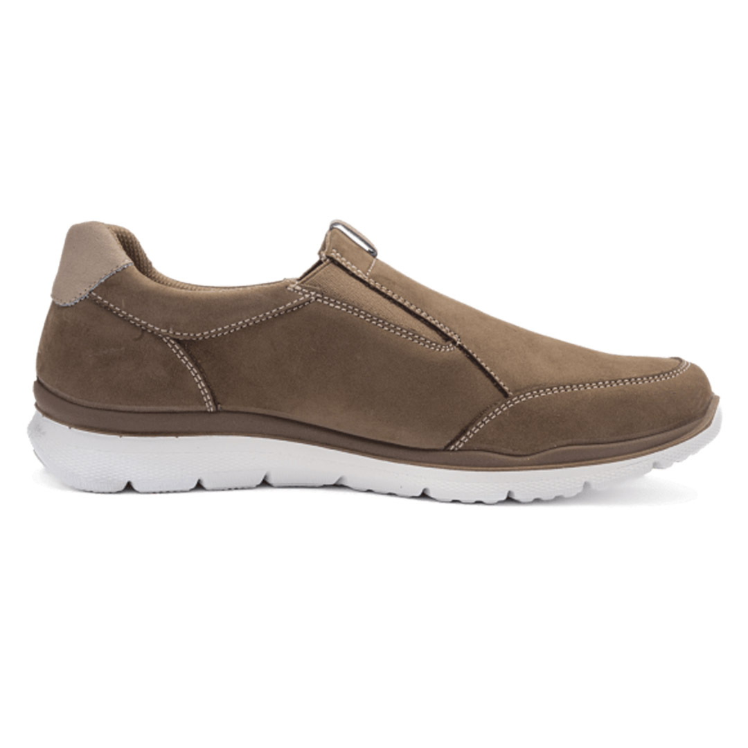 Pánské mokasíny Ara Loafer v elegantním odstínu safari talpa jsou vyrobeny z kvalitní nubukové usně, která se vyznačuje měkkým, poddajným povrchem a příjemným komfortem při nošení. Obuv není zateplená, a je proto vhodná především pro jarní, letní a podzimní sezónu. Vnitřní část je opatřena měkkou textilní podšívkou, která zlepšuje klima uvnitř obuvi a přispívá k celkovému pohodlí během celodenní chůze. Stélka je vyjímatelná, což usnadňuje údržbu a umožňuje případné doplnění vlastních ortopedických vložek podle individuálních potřeb. Podešev je vyrobena z pružného a lehkého syntetického materiálu, který dobře tlumí došlap a poskytuje stabilní oporu při pohybu po různých površích. Mírně zpevněný opatek přispívá ke stabilitě paty a lepšímu vedení chodidla. Tvar špičky je jemně zaoblený, což poskytuje dostatek prostoru prstům a podporuje přirozený krok. Obuv odpovídá standardní dámské šířce a je navržena pro pohodlné celodenní nošení. Model není voděodolný, proto se doporučuje vyhýbat se dlouhodobému kontaktu s vlhkostí. Pro zachování vzhledu nubukové usně se doporučuje pravidelné čištění vhodným kartáčkem na semiš a ošetřování impregnačními přípravky určenými pro broušenou kůži.