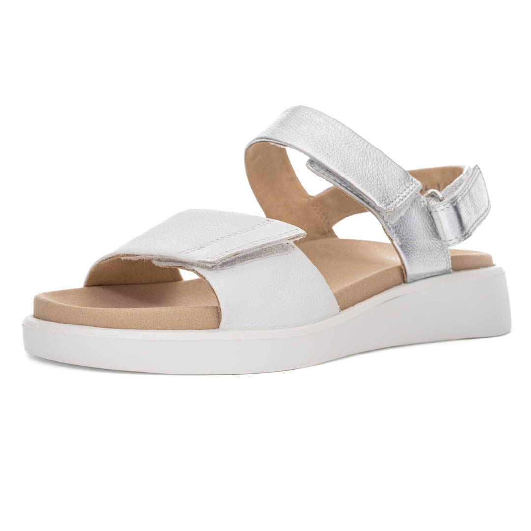 Dámské sandály Ara Madeira v bílo-stříbrném provedení jsou ideální volbou pro letní dny, kdy chcete spojit eleganci s pohodlím. Svršek z kvalitní hladké kůže v bílé barvě je doplněn stříbrnými detaily, které dodávají obuvi sofistikovaný vzhled. Nastavitelný pásek na suchý zip přes nárt umožňuje individuální přizpůsobení šířky a zajišťuje stabilní a pohodlné nošení. Měkká stélka a flexibilní podešev poskytují komfort i při delším nošení, zatímco otevřený design zajišťuje dostatečnou ventilaci během teplých dnů. Tyto sandály jsou vhodné jak pro každodenní nošení, tak i pro zvláštní příležitosti, kdy chcete vypadat stylově a zároveň se cítit pohodlně.