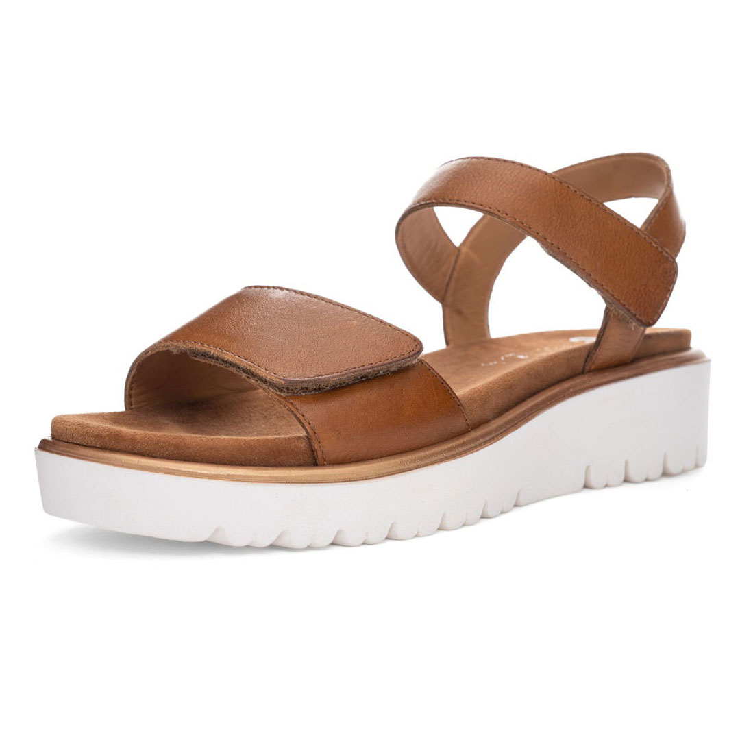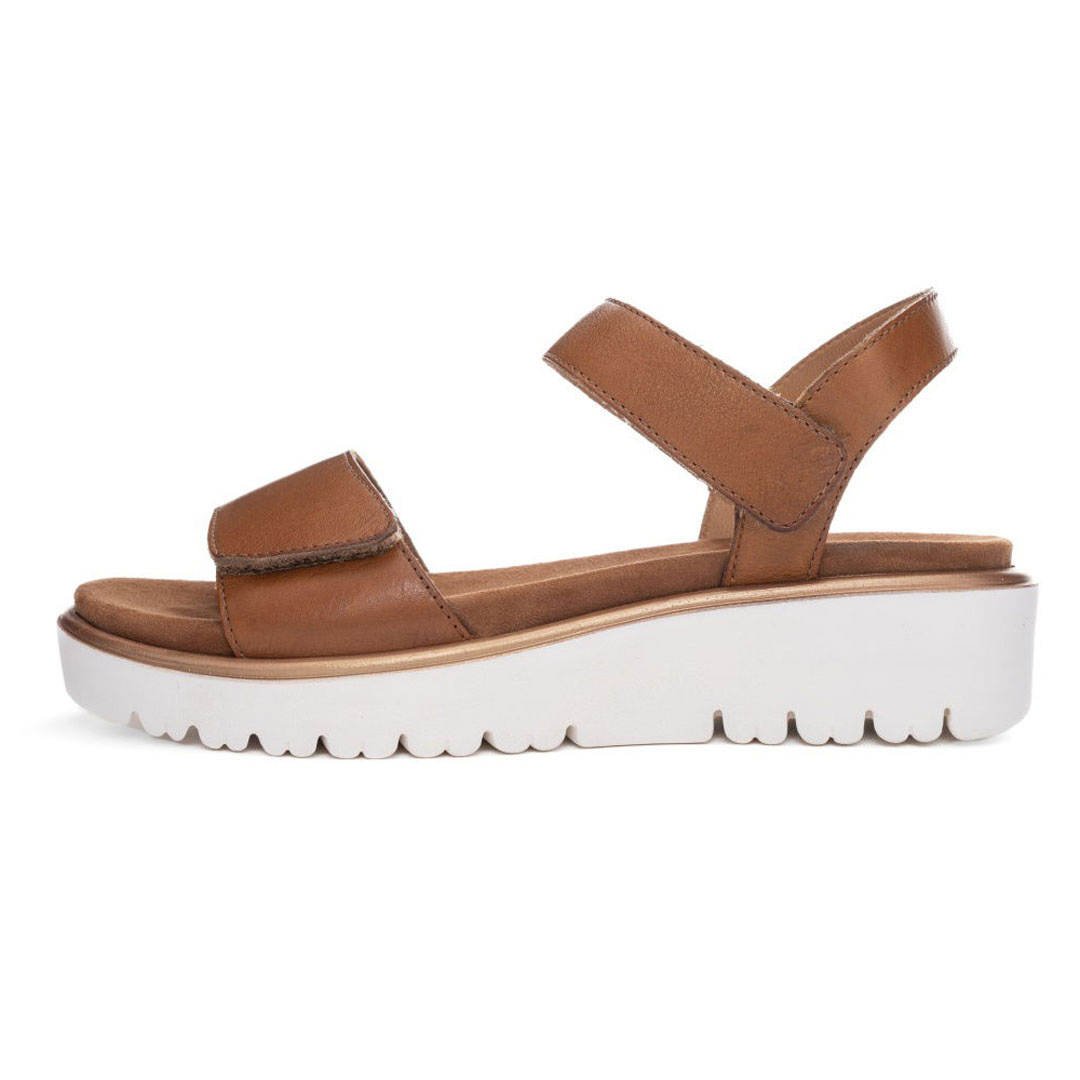 Dámské sandály ara Bilbao v elegantním odstínu cognac představují stylovou a zároveň mimořádně pohodlnou letní obuv vhodnou pro každodenní nošení. Svršek je vyroben z kvalitní hladké usně, která je měkká, odolná a dobře se přizpůsobuje tvaru chodidla. Díky širším páskům a zapínání na suchý zip lze obuv snadno upravit podle individuálních potřeb, což zajišťuje stabilní usazení nohy a vysoký komfort při chůzi. Vnitřní část je kožená nebo kombinovaná s měkkou podšívkou a polstrovanou stélkou, která podporuje příjemné klima uvnitř obuvi a zvyšuje pohodlí i při celodenním nošení. Lehká konstrukce je doplněna o klínkovou platformovou podešev (cca 4 cm), která poskytuje dobré tlumení nárazů, stabilitu a zároveň opticky prodlužuje postavu. Podešev ze syntetického materiálu je flexibilní, odolná a zajišťuje jistý krok na různých typech povrchu. Model Bilbao je navržen v komfortní šířce (G), která nabízí dostatek prostoru pro chodidlo a zvyšuje pohodlí i při delším nošení. Sandály ara Bilbao jsou ideální volbou pro ženy, které hledají kvalitní, pohodlnou a zároveň elegantní obuv vhodnou pro město, cestování i každodenní letní aktivity.