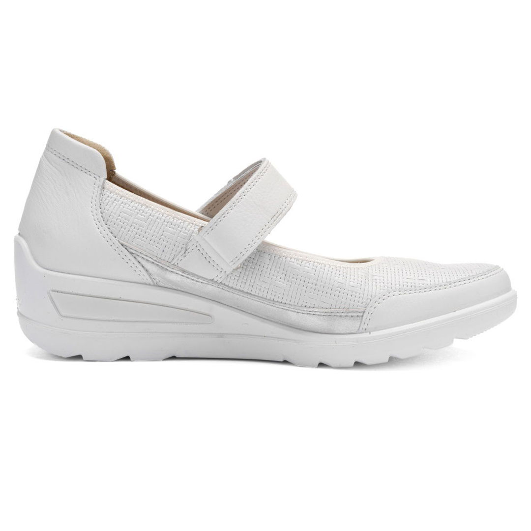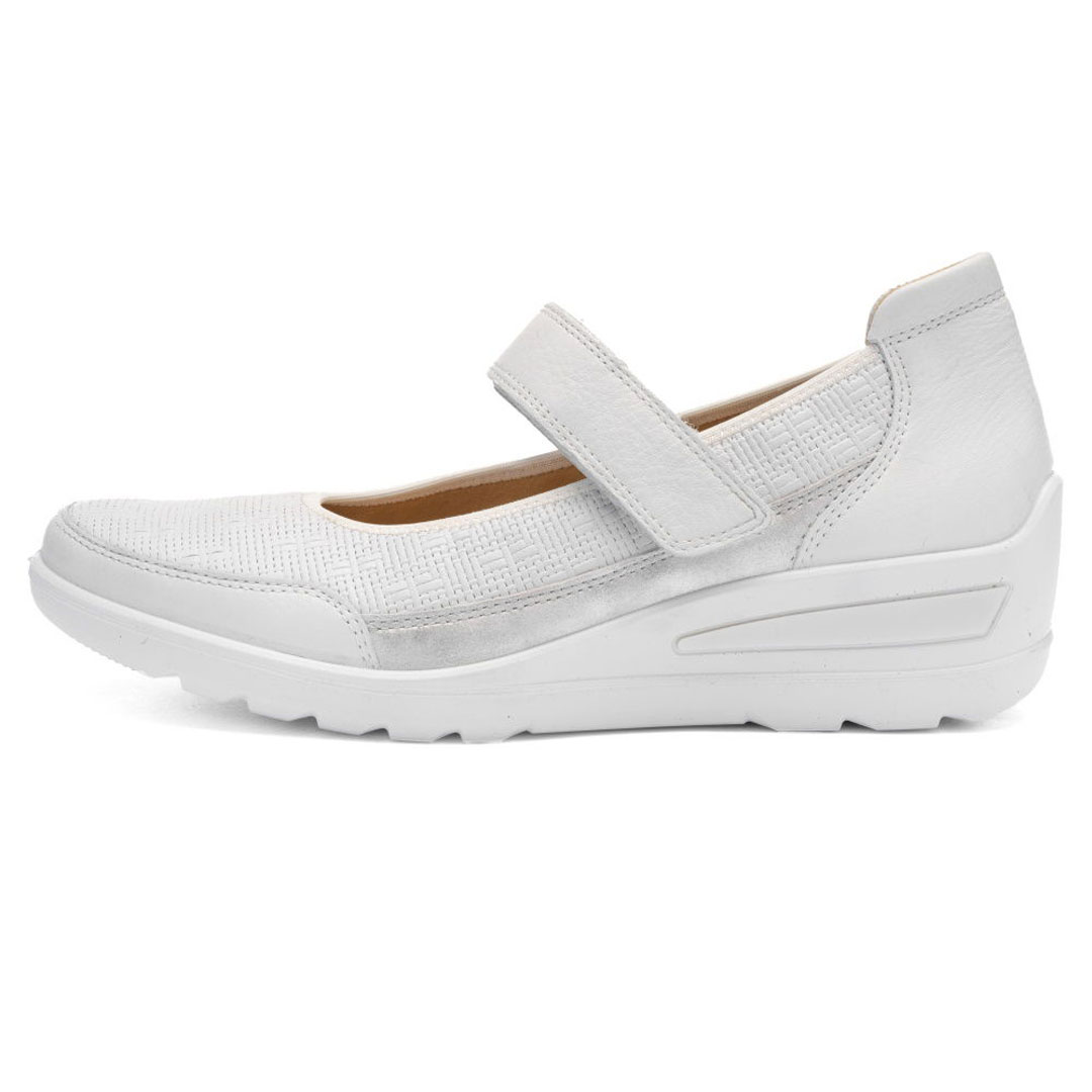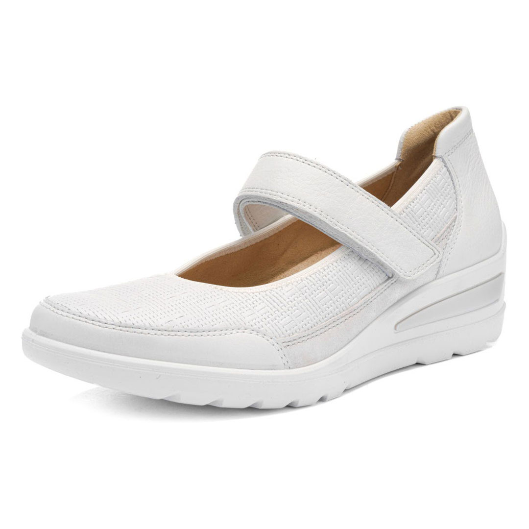 Dámské baleríny ara Zürich v bílém provedení představují elegantní a nadčasovou obuv vhodnou pro slavnostní příležitosti i každodenní nošení v letních měsících. Svršek je vyroben z kvalitní hladké usně, která je měkká, prodyšná a velmi dobře se přizpůsobuje tvaru chodidla. Díky tomu poskytuje obuv vysoký komfort i při delším nošení. Vnitřní část je doplněna jemnou podšívkou a měkce polstrovanou stélkou, která podporuje příjemné klima uvnitř obuvi a zvyšuje pohodlí při chůzi. Model je navržen s důrazem na stabilitu a komfort – středně vysoký podpatek zajišťuje elegantní vzhled a zároveň pohodlný došlap. Lehká a flexibilní podešev přispívá k jistotě kroku na různých typech povrchu a snižuje únavu nohou. Konstrukce obuvi využívá komfortní technologie HighSoft, která kombinuje měkký svršek, flexibilní podešev a odpruženou stélku pro maximální pohodlí. Baleríny Ara Zürich jsou ideální volbou pro ženy, které hledají kvalitní, pohodlnou a elegantní obuv vhodnou do práce, na společenské akce i běžné denní nošení.