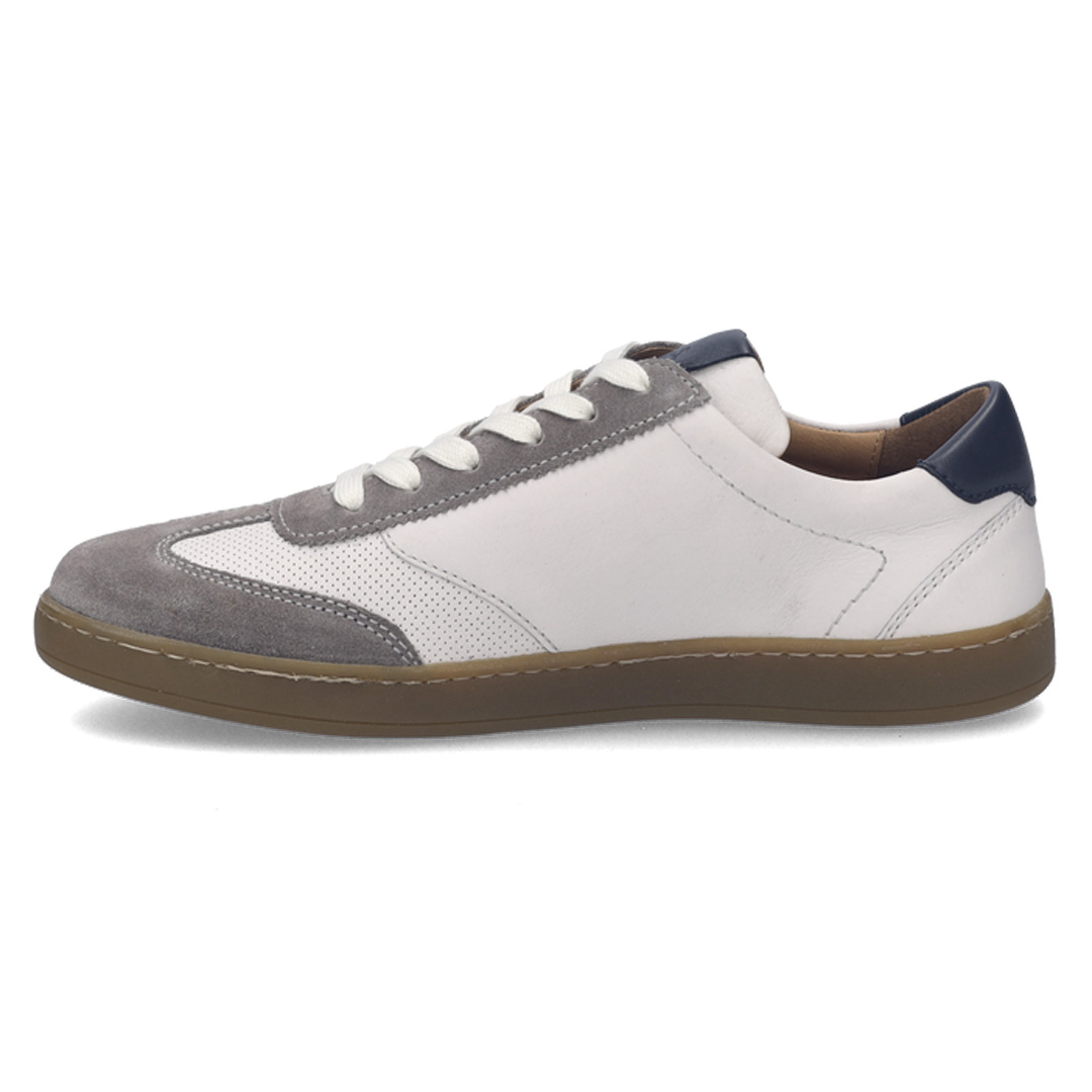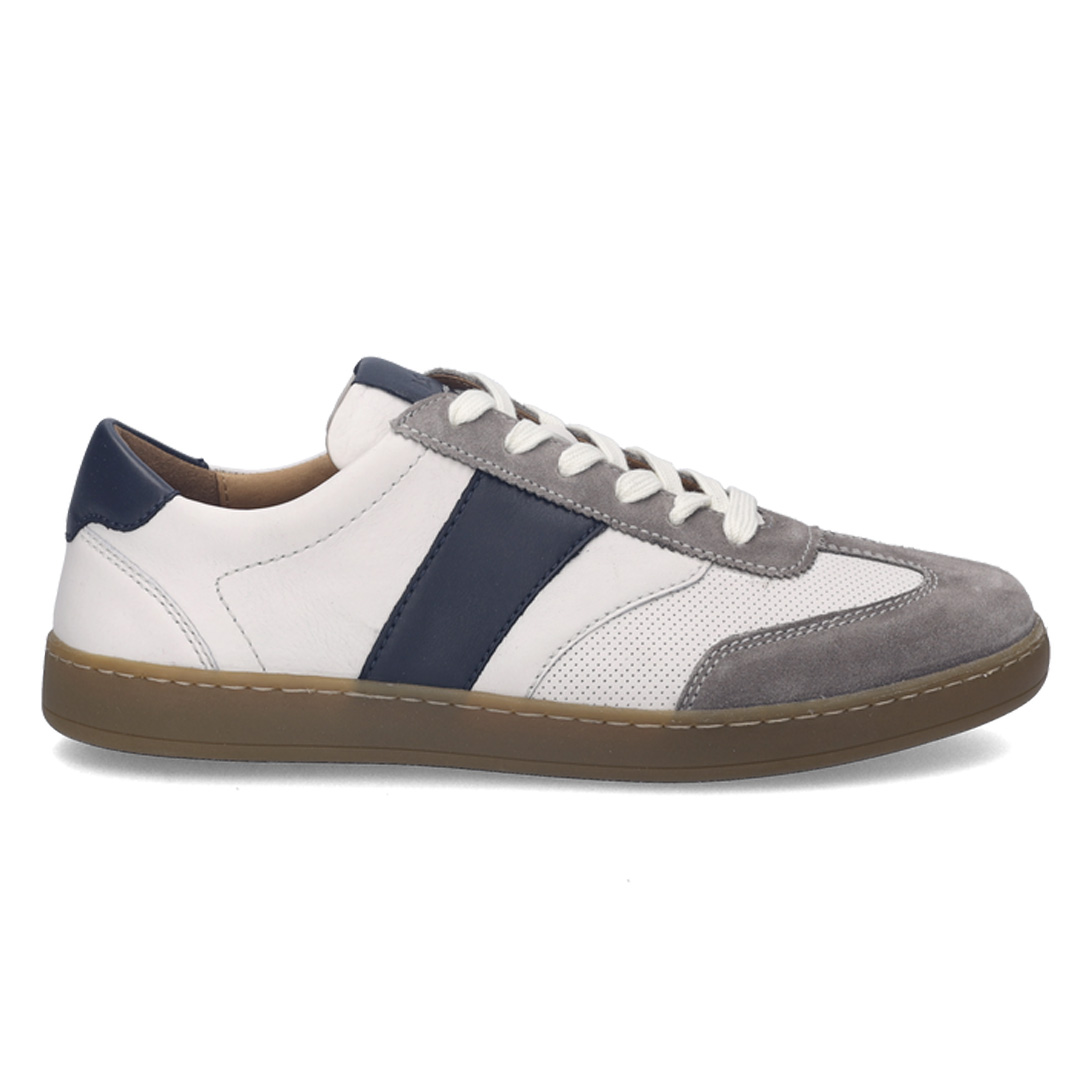 Pánské tenisky Josef Seibel Lio 05 v barevném provedení asphalt multi představují pohodlnou volnočasovou obuv s moderním sportovním vzhledem. Svršek je vyroben z kvalitní přírodní kůže, která je příjemná na nošení, dobře se přizpůsobuje chodidlu a zároveň zajišťuje dlouhou životnost obuvi. Vnitřní část je vybavena koženou podšívkou a komfortní stélkou, která přispívá k pohodlí při každodenním nošení. Kombinace šedého základu s barevnými detaily dodává modelu moderní vzhled a umožňuje snadné kombinování s volnočasovým oblečením. Model je vybaven klasickým šněrováním, které umožňuje optimální přizpůsobení chodidlu. Lehká a flexibilní gumová podešev s protiskluzovými vlastnostmi poskytuje stabilitu a jistotu při chůzi, zatímco měkká konstrukce podporuje přirozený pohyb chodidla. Praktickou výhodou je také vyjímatelná kožená stélka, kterou lze v případě potřeby nahradit vlastní ortopedickou vložkou. Díky kombinaci kvalitních materiálů a pohodlné konstrukce jsou tyto tenisky vhodné pro každodenní nošení, cestování i aktivní volný čas.
