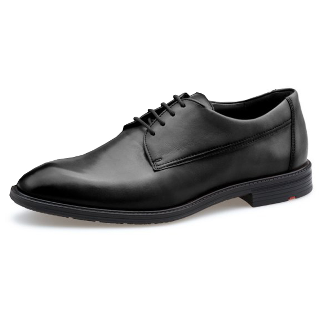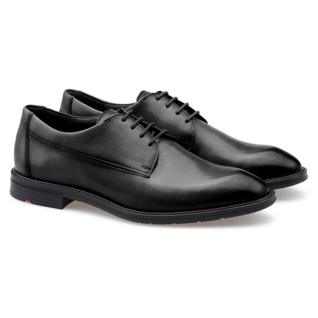 Pánská obuv Lloyd v černém provedení nabízí elegantní a nadčasový design vhodný jak do práce, tak i na společenské události. Svršek z kvalitní hladké kůže působí ušlechtilým dojmem a je odolný vůči běžnému opotřebení, což zaručuje dlouhou životnost. Klasické šněrování umožňuje přesné přizpůsobení noze, a tím zvyšuje komfort při celodenním nošení. Uvnitř je použitá kvalitní kožená podšívka a pohodlná stélka, která přispívá k celkovému pohodlí i při delší chůzi. Lehká a stabilní podešev poskytuje dobrý záběr na různých površích a podporuje přirozený krok. Černá barva se snadno kombinuje s formálním i smart casual outfitem, takže tyto boty ocení každý, kdo hledá stylové a pohodlné řešení pro každodenní nošení.