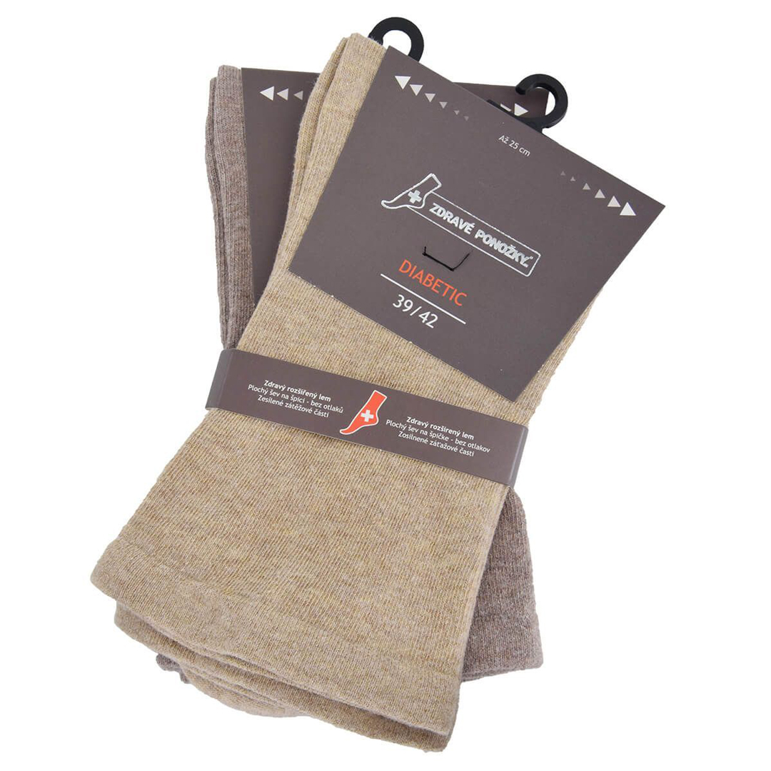 Ponožky Olet rozšířené diabetické jsou navrženy pro maximální pohodlí a šetrnost k citlivým nohám. Díky extra rozšířenému hornímu lemu a elastickému materiálu se snadno navlékají, neškrtí a zajišťují volný průtok krve, což ocení zejména osoby s diabetem nebo otoky nohou. Plochý šev v oblasti prstů a zesílené zóny na patě a špičce přispívají k dlouhé životnosti a komfortu při nošení. Balení obsahuje dva páry ponožek, které jsou ideální pro každodenní použití. Tyto ponožky jsou vhodné pro osoby hledající zdravotní ponožky s volným lemem a vysokou elasticitou.