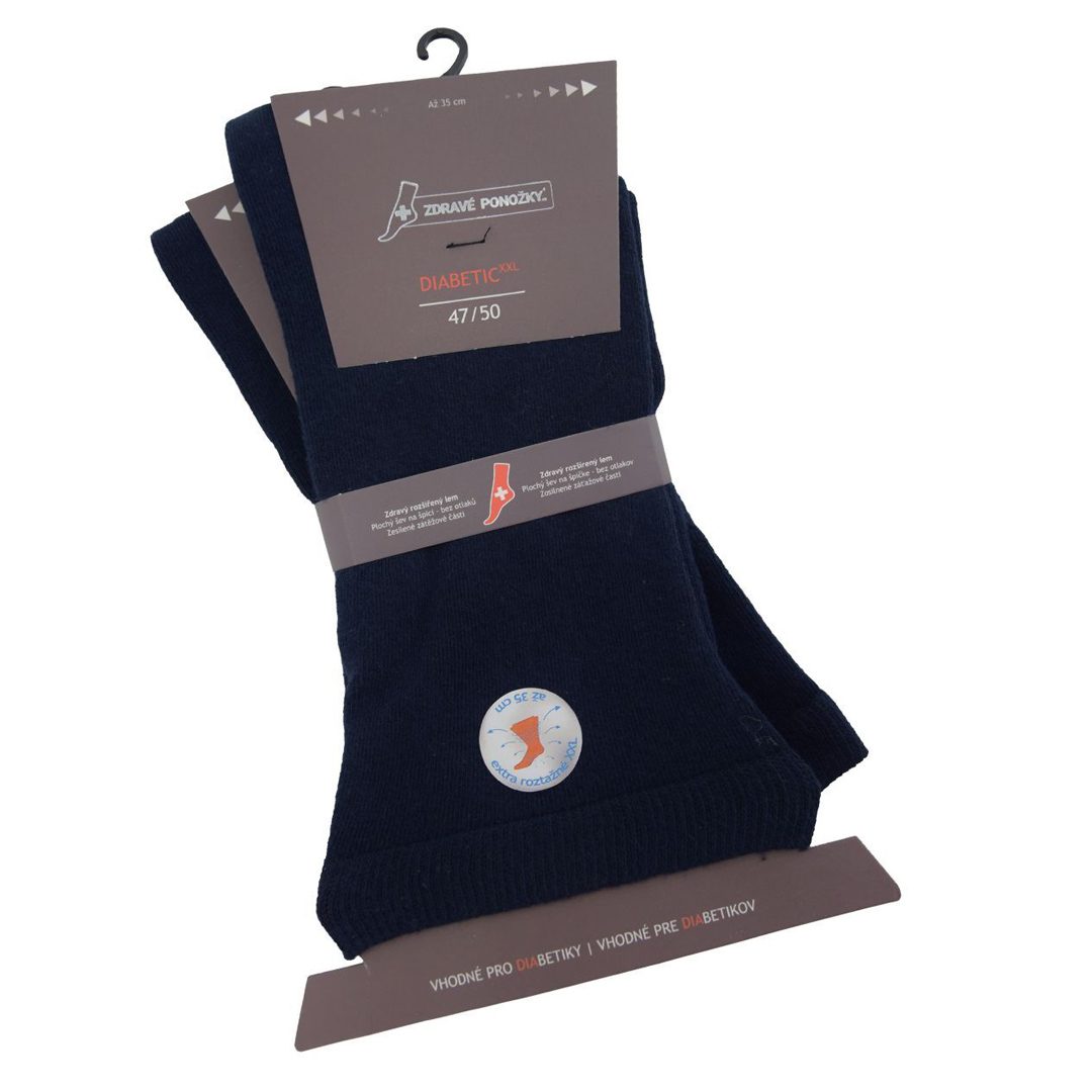 Ponožky jsou vyrobeny z příjemného materiálu s vysokým podílem bavlny, který je komfortní při nošení a vhodný pro celodenní použití. Elastické, nestahující provedení pomáhá ponožkám dobře držet na místě bez omezení krevního oběhu a vzniku otlaků. Jsou ideální volbou pro zákazníky, kteří hledají zdravotně šetrné ponožky ve větších velikostech s maximálním důrazem na pohodlí a funkčnost. Složení: 70 % bavlna, 25 % polyester, 5 % elastan