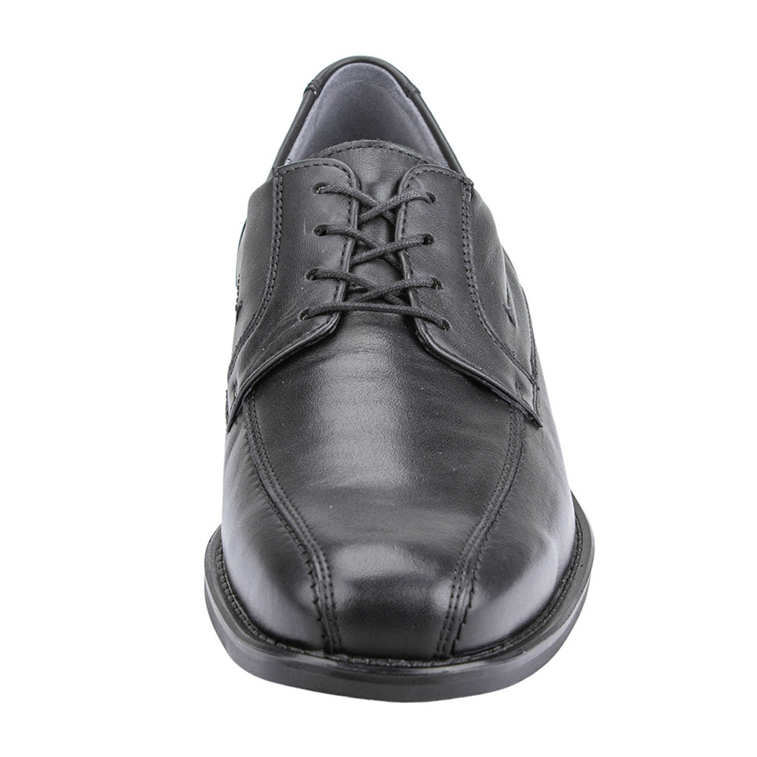 Pánská obuv Waldläufer Henry v černém provedení představuje pohodlný a kvalitní model vhodný pro každodenní nošení i volnočasové aktivity. Svršek bot je vyroben z hladké přírodní usně, která se vyznačuje dobrou odolností, příjemným pocitem na dotek a přirozenou prodyšností. Obuv není zateplená, proto je určena především pro teplejší období roku nebo pro nošení v interiéru či na suchém povrchu. Vnitřní podšívka je měkká a komfortní, což zvyšuje pohodlí během celodenního nošení. Stélka je anatomicky tvarovaná a vyjímatelná, což usnadňuje údržbu a zároveň umožňuje výměnu za individuální ortopedickou vložku podle potřeby. Podešev je lehká, pružná a vyrobena z kvalitního syntetického materiálu s protiskluzovou úpravou, která zajišťuje stabilní došlap a dobrou trakci na různých površích. Opatek je mírně zpevněný, čímž podporuje stabilitu paty a vedení chodidla při chůzi. Tvar špičky je kulatý a poskytuje dostatek prostoru prstům, což přispívá k přirozenému pohybu a komfortu. Obuv odpovídá standardní pánské šířce. Model není voděodolný, proto se doporučuje vyhýbat se dlouhodobému kontaktu s vlhkostí. Pro zachování vzhledu a funkčních vlastností kůže se doporučuje pravidelné čištění měkkým hadříkem a ošetřování přípravky určenými pro hladkou kůži.