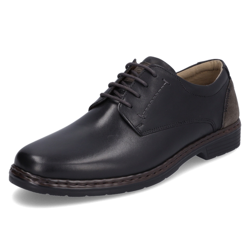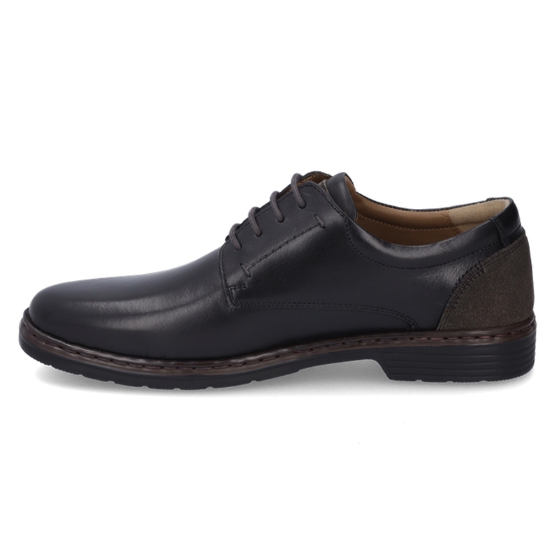 Pánské polobotky Josef Seibel Alastair 01 v klasické černé barvě jsou elegantní a praktickou volbou pro každodenní nošení i formálnější příležitosti. Svršek je vyroben z hladké, kvalitní usně, která působí reprezentativně a zároveň je odolná a snadná na údržbu. Elastické vsadky po stranách zajišťují snadné nazouvání bez potřeby šněrování, a zároveň drží botu pevně na noze. Díky svému jednoduchému a nadčasovému designu se snadno kombinuje s oblekem i volnočasovým outfitem. Uvnitř se nachází měkká kožená podšívka a komfortní stélka, která je vyjímatelná a připravená i pro vlastní ortopedické vložky. Lehká a flexibilní podešev zajišťuje pohodlný došlap a spolehlivý krok během celého dne. Josef Seibel Alastair 01 je ideální volbou pro muže, kteří hledají spolehlivou a stylovou obuv do práce, kanceláře i pro společenské události.