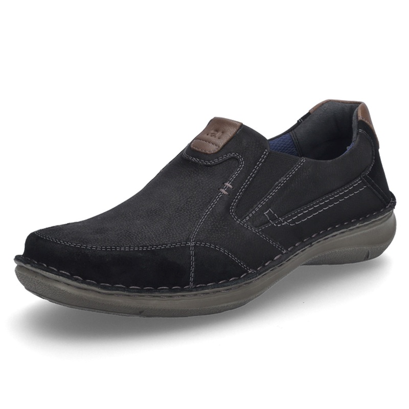 Tato stylová pánská obuv od značky Josef Seibel nabízí dokonalý komfort a elegantní vzhled pro každodenní nošení. Vyrobena z kvalitní usně zaručuje dlouhou životnost a maximální pohodlí po celý den. Boty mají pružné boční vsadky, které usnadňují nazouvání a zajišťují dokonalé přizpůsobení noze. Měkká stélka a flexibilní podrážka poskytují oporu a tlumí nárazy, což zajišťuje příjemnou chůzi i při delším nošení. Černý design s decentními prošívanými detaily a hnědými akcenty na patě dodává botám moderní a univerzální vzhled.