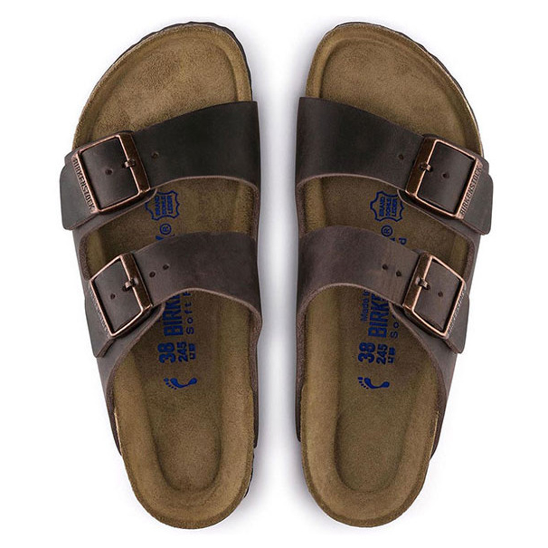 Tyto sandály značky Birkenstock z řady Arizona ve variantě Habana zaujmou elegantním vzhledem a rustikálním šarmem. Dva robustní pásky z olejované přírodní usně v tmavě hnědé barvě působí přirozeně a zároveň velmi odolně. Kovové přezky s logem Birkenstock v bronzovém provedení dotvářejí kvalitní vzhled a umožňují přesné přizpůsobení chodidlu. Tento model je ideální jak pro volnočasové nošení, tak i pro každodenní pohodlí doma i venku. Anatomicky tvarovaná stélka s měkkým došlapem (Soft Footbed) spojuje klasický korkovo-latexový základ s dodatečnou vrstvou měkkého polstrování, která zvyšuje komfort. Povrch stélky tvoří jemný semiš, který je příjemný na dotek a dobře odvádí vlhkost. Podrážka z EVA materiálu je lehká, pružná a odolná proti opotřebení. Tento model je důkazem, že zdravá chůze může jít ruku v ruce se stylovým designem.