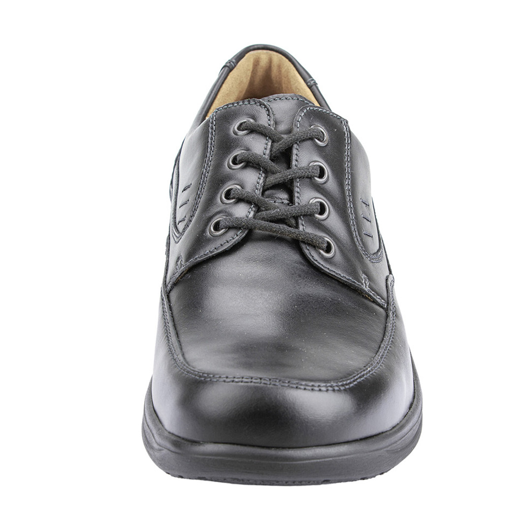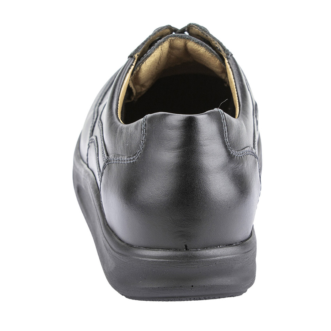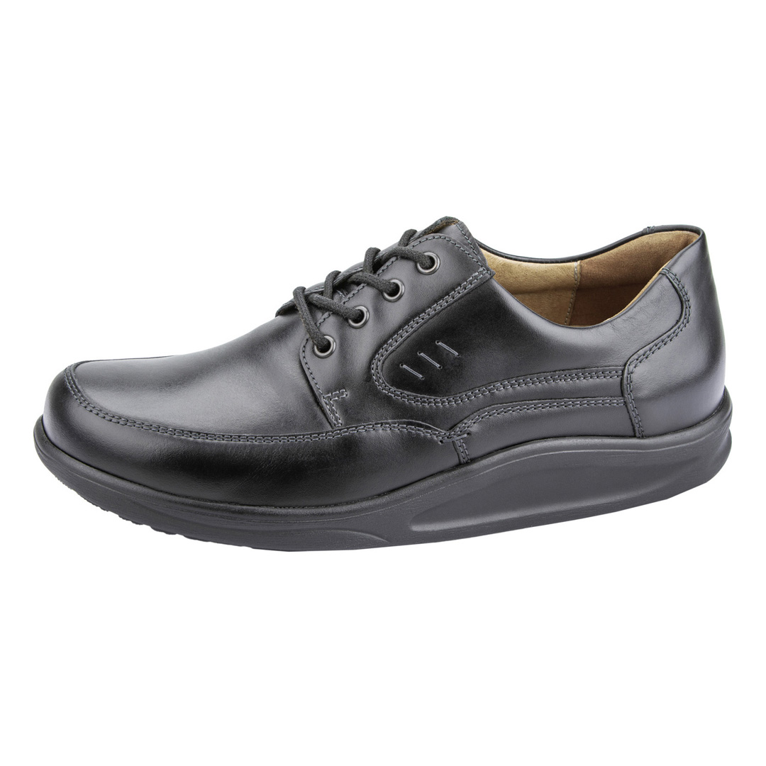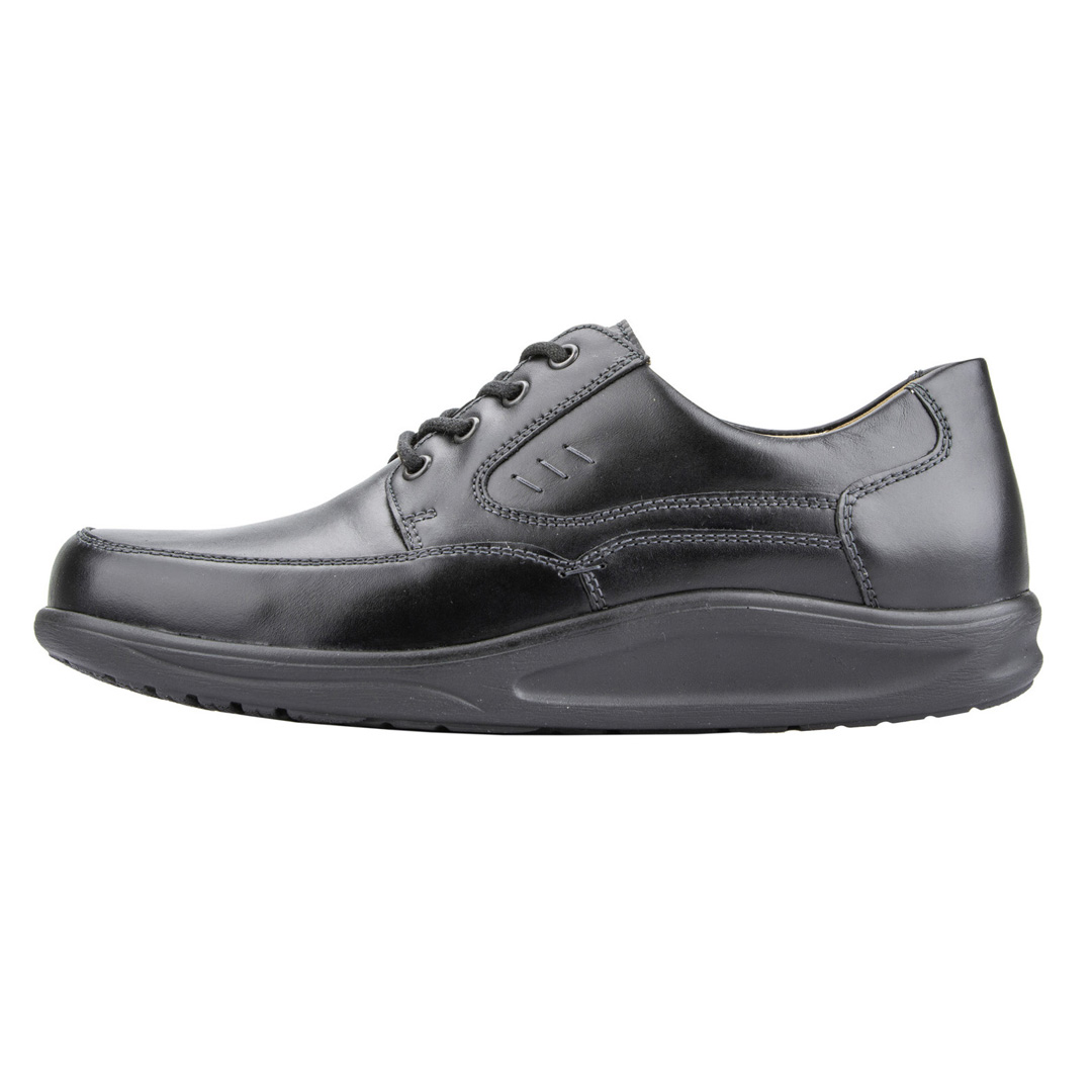Pánské boty Waldläufer Helgo jsou komfortní volnočasová obuv, která klade důraz na pohodlí, podporu chodidla a stabilitu při každodenním nošení. Svršek je vyroben z kvalitní hladké přírodní usně s jemným leskem, která je odolná vůči běžnému opotřebení a příjemná na dotek. Obuv není zateplená, což zajišťuje dobrou prodyšnost a komfort v teplejších obdobích roku nebo při celodenní aktivitě. Vnitřní podšívka je měkká a pohledová, což zvyšuje celkový komfort při nošení. Stélka je vyjímatelná, což umožňuje její snadné čištění nebo výměnu za vlastní ortopedickou vložku podle potřeby. Podešev kombinuje lehkou a flexibilní konstrukci s technologií Rocker, která podporuje přirozený odraz chodidla a přispívá k efektivnímu tlumení došlapu. Tato konstrukce napomáhá plynulejšímu kroku a snižuje únavu při delších procházkách. Opatek je mírně zpevněný, což zvyšuje stabilitu paty a oporu při pohybu. Tvar špičky je zaoblený a poskytuje dostatek prostoru prstům, čímž podporuje zdravý a přirozený postoj chodidla. Obuv je navržena ve standardní pánské šířce a je vhodná pro uživatele hledající pohodlí, stabilitu a funkční tlumení. Boty nejsou voděodolné, a proto se doporučuje chránit je před dlouhodobým působením vlhkosti. Pro udržení vzhledu a kvality kůže se doporučuje pravidelné čištění měkkým hadříkem a ošetřování přípravky určenými na hladkou kůži.
