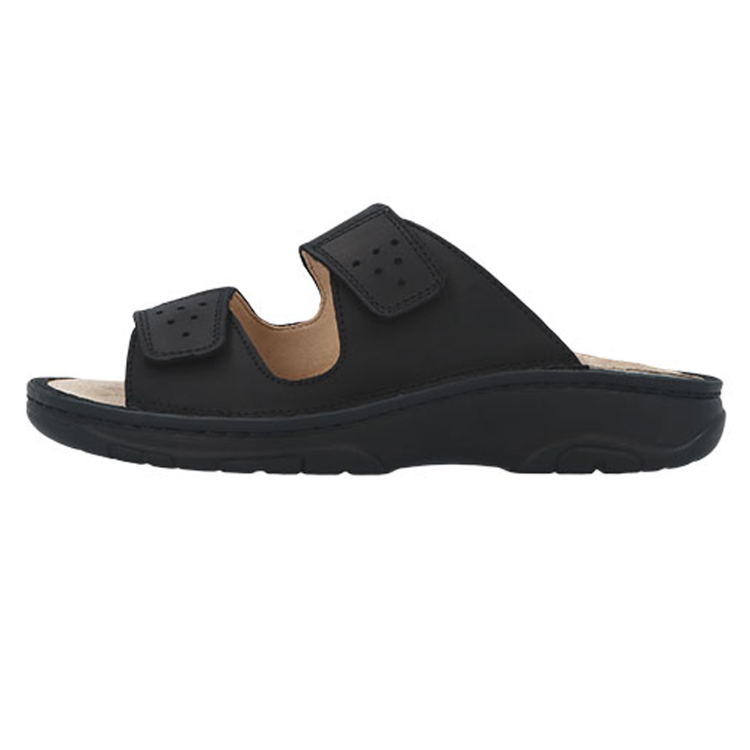 Vlastnosti: pánské pantofle dva nastavitelné pásky na suchý zip anatomicky tvarovaná, měkká stélka kvalitní kožený svršek lehká a stabilní podešev vhodné pro každodenní nošení