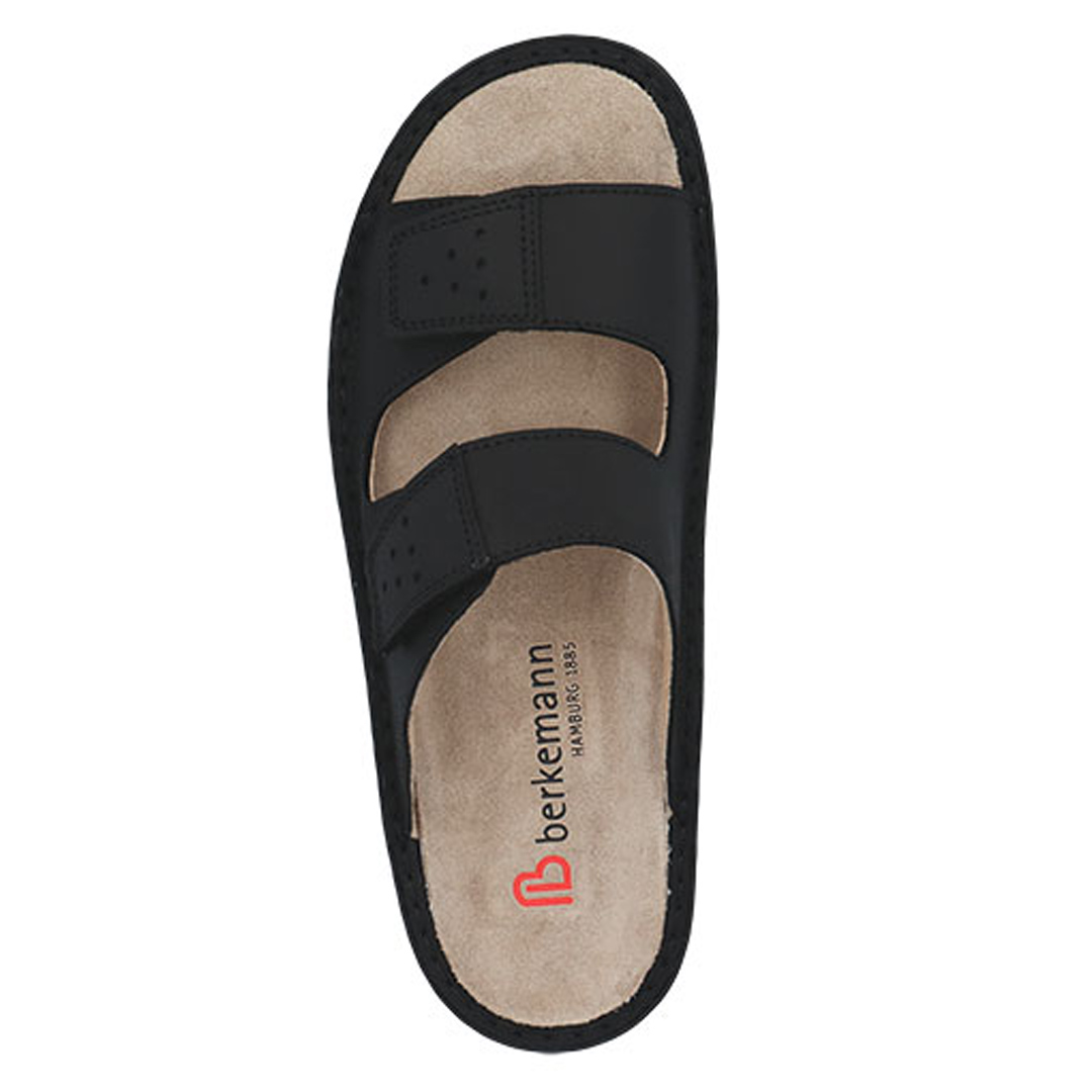 Pánské pantofle Berkemann jsou navrženy pro maximální pohodlí při každodenním nošení doma i venku. Dva nastavitelné pásky na suchý zip umožňují snadné přizpůsobení šířky obuvi individuálním potřebám chodidla a zajišťují stabilní krok. Anatomicky tvarovaná měkká stélka podporuje přirozené postavení nohy, odlehčuje kloubům a pomáhá snižovat únavu i při delším stání. Kvalitní kožený svršek je prodyšný a příjemný na nošení. Lehká a flexibilní podešev tlumí nárazy a zvyšuje celkový komfort chůze. Pantofle jsou vhodné i pro citlivá chodidla a pro muže, kteří hledají kvalitní, funkční a nadčasovou obuv.