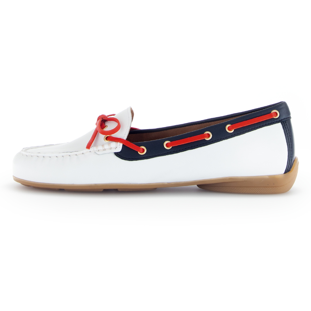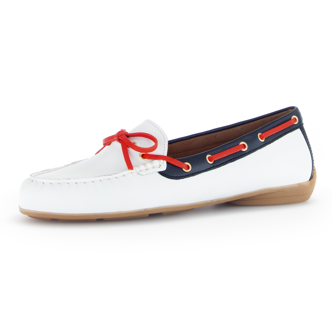 Dámské bílé mokasíny značky Gabor jsou vyrobeny z hladké usně, která dodává obuvi elegantní a nadčasový vzhled. Minimalistický design s kulatou špičkou a jemnými detaily činí tyto mokasíny univerzální volbou pro různé příležitosti, od pracovního prostředí po volnočasové aktivity. Bílá barva zajišťuje snadné kombinování s různými outfity, což zvyšuje jejich praktičnost. Vnitřní část obuvi je opatřena koženou podšívkou, která poskytuje pohodlí i při delším nošení. Nízký podpatek o výšce 1,5 cm přidává jemný zdvih, aniž by obětoval stabilitu. Obuv je navržena v šířce F, což je standardní šířka vhodná pro většinu typů chodidel. Díky pečlivému zpracování a použití kvalitních materiálů jsou tyto mokasíny ideální volbou pro ženy hledající spojení elegance a komfortu v každodenním životě.