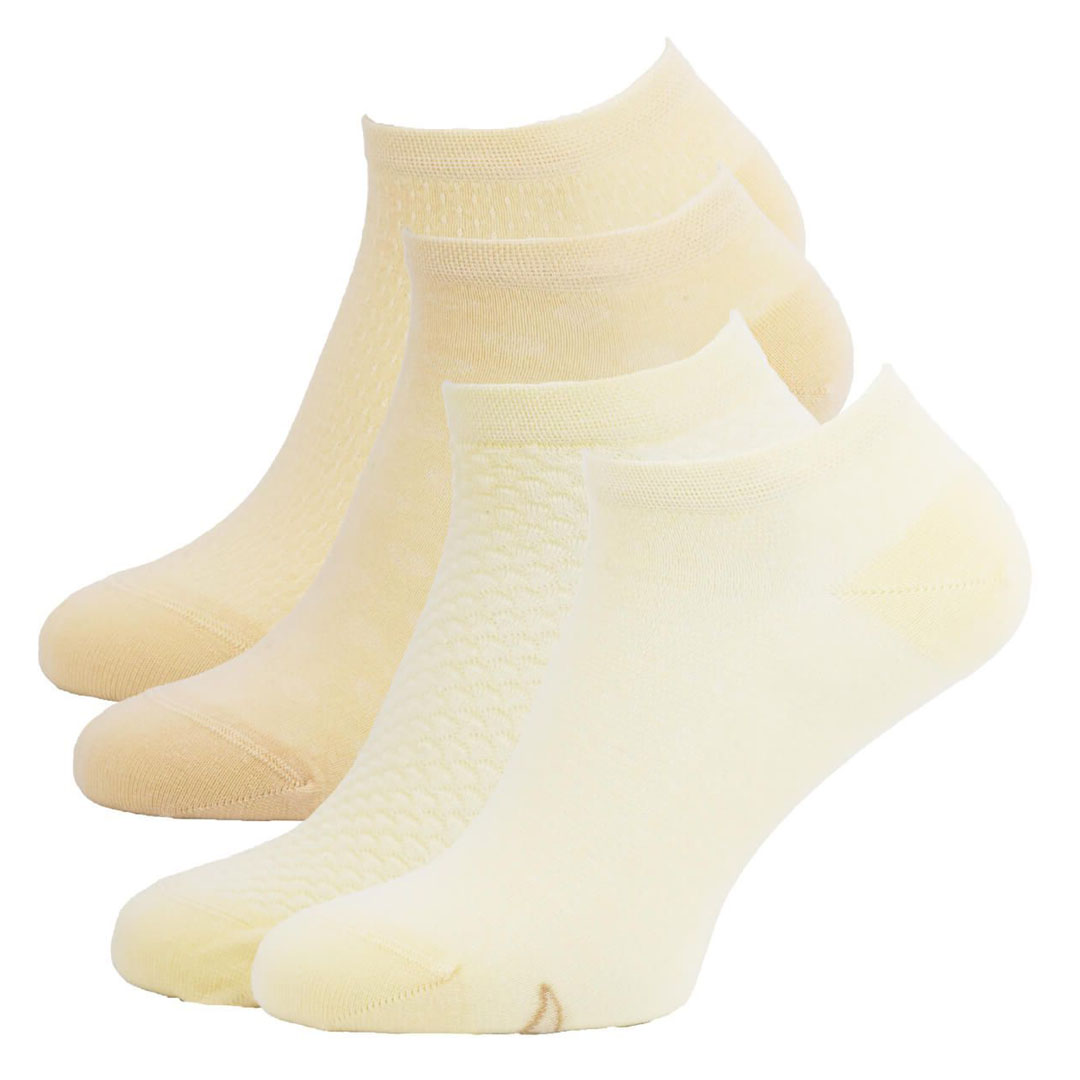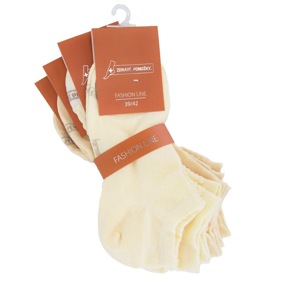 Ponožky jsou vyrobeny z bavlněného materiálu, který je příjemný na dotek a prodyšný, což přispívá k pohodlí při nošení. Elastické provedení zajišťuje dobré přizpůsobení noze a pomáhá ponožkám držet na místě bez shrnování. Jsou vhodné pro každodenní použití a ocení je zákaznice, které hledají kombinaci komfortu, praktičnosti a jemného vzoru. Složení: 80 % bavlna, 17 % polyamid, 3 % elastan
