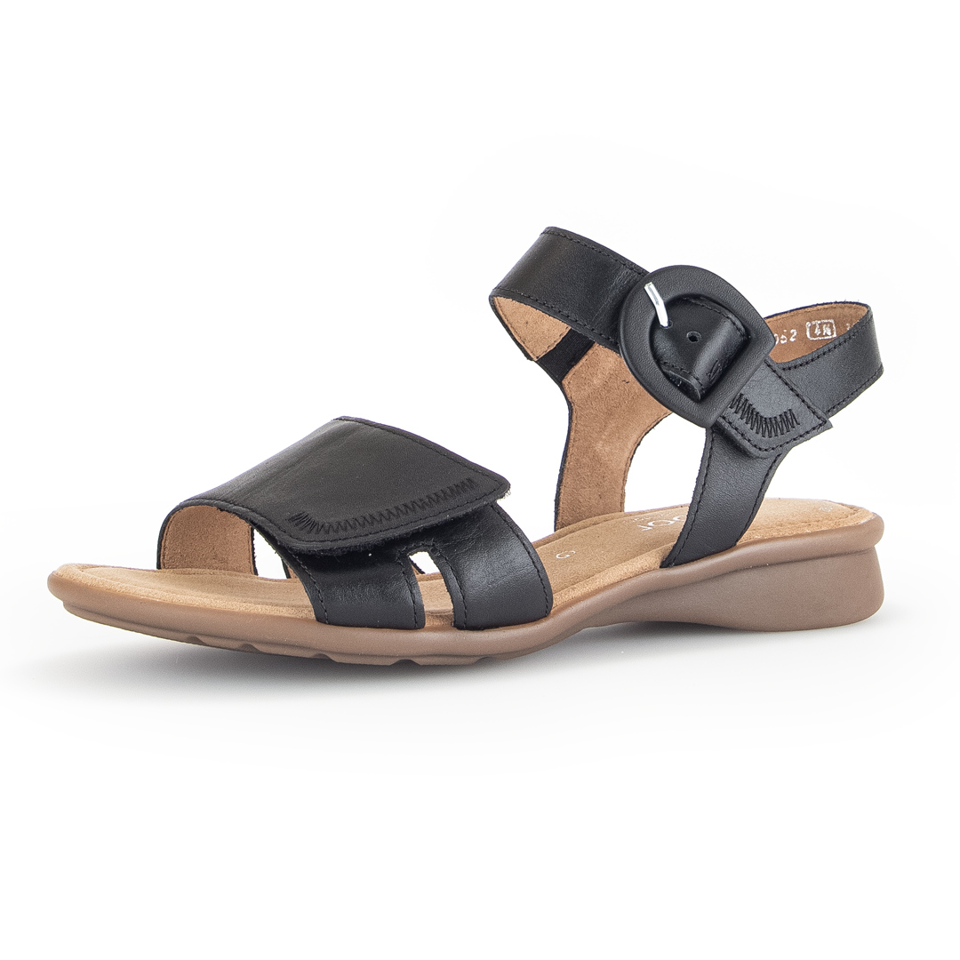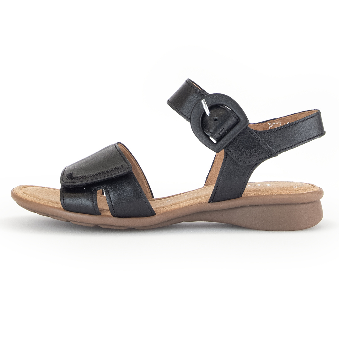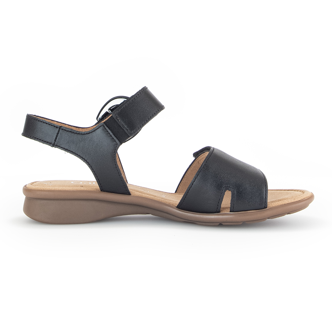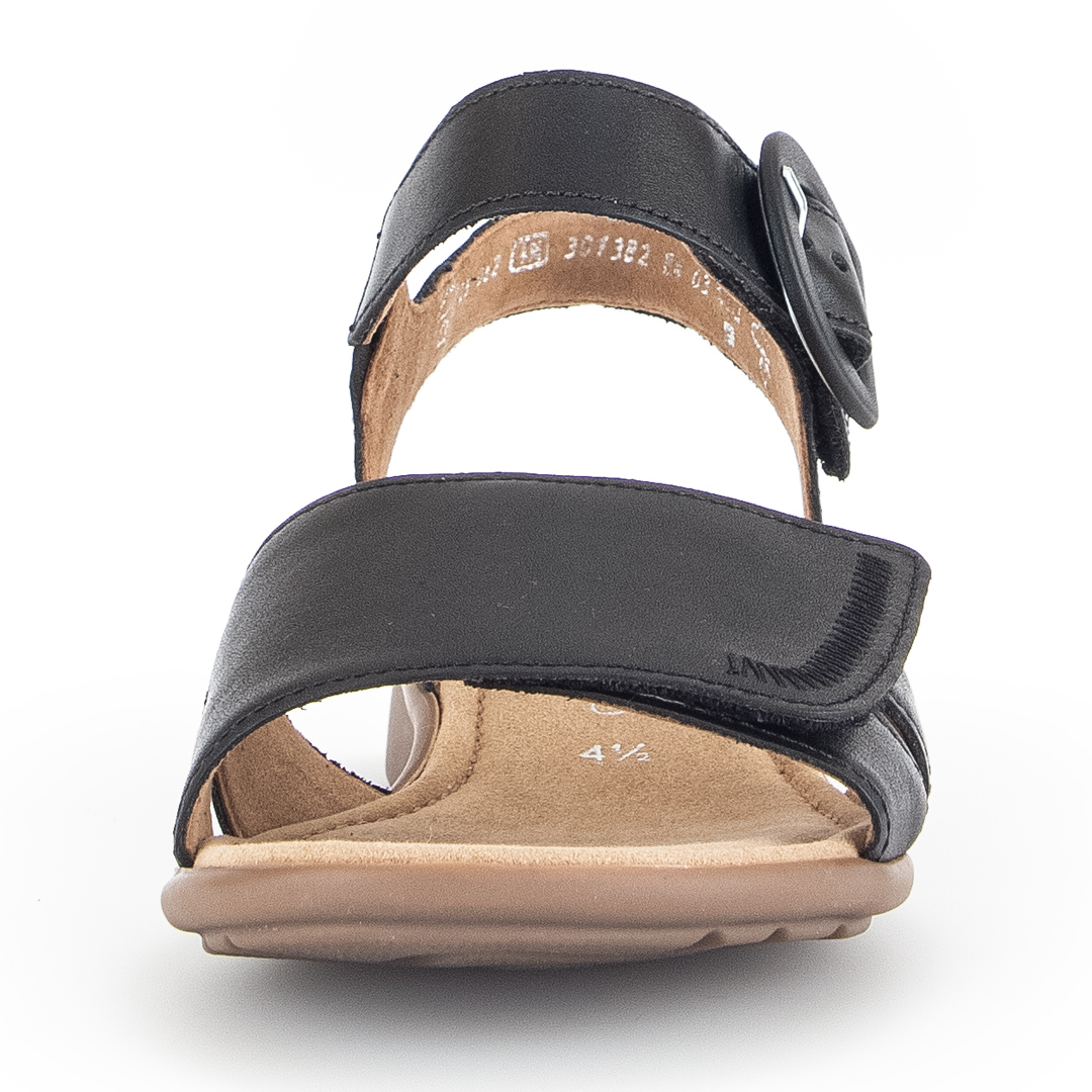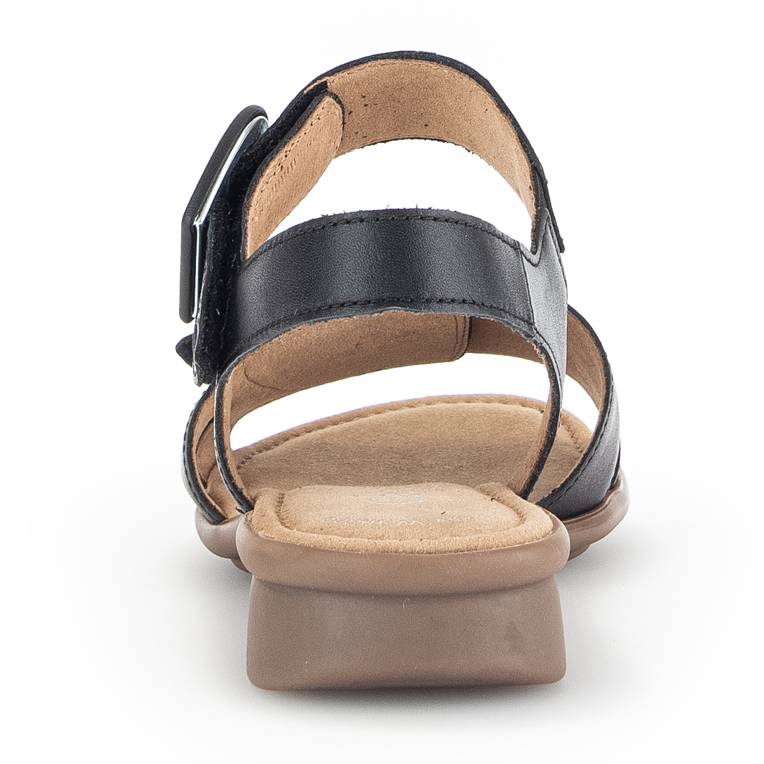 Elegantní černé sandály s pásky od značky Gabor jsou vyrobeny z kvalitní hladké usně, která dodává obuvi sofistikovaný a nadčasový vzhled. Design zahrnuje několik jemných pásků, které se elegantně kříží přes nárt a zajišťují pevné a pohodlné uchycení chodidla. Nastavitelný pásek kolem kotníku s kovovou sponou umožňuje individuální přizpůsobení a snadné obouvání. Otevřená špička a pata podtrhují letní charakter obuvi, zatímco černá barva zajišťuje snadné kombinování s různými outfity. Nízký blokový podpatek poskytuje stabilitu a komfort při chůzi, což činí tyto sandály ideální volbou pro celodenní nošení. Vnitřní část obuvi je opatřena kvalitní podšívkou, která zvyšuje pohodlí a přispívá k příjemnému pocitu při nošení. Díky pečlivému zpracování a použití prvotřídních materiálů jsou tyto sandály perfektní volbou pro ženy hledající kombinaci elegance a pohodlí v letní obuvi.