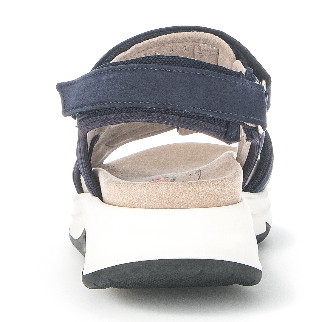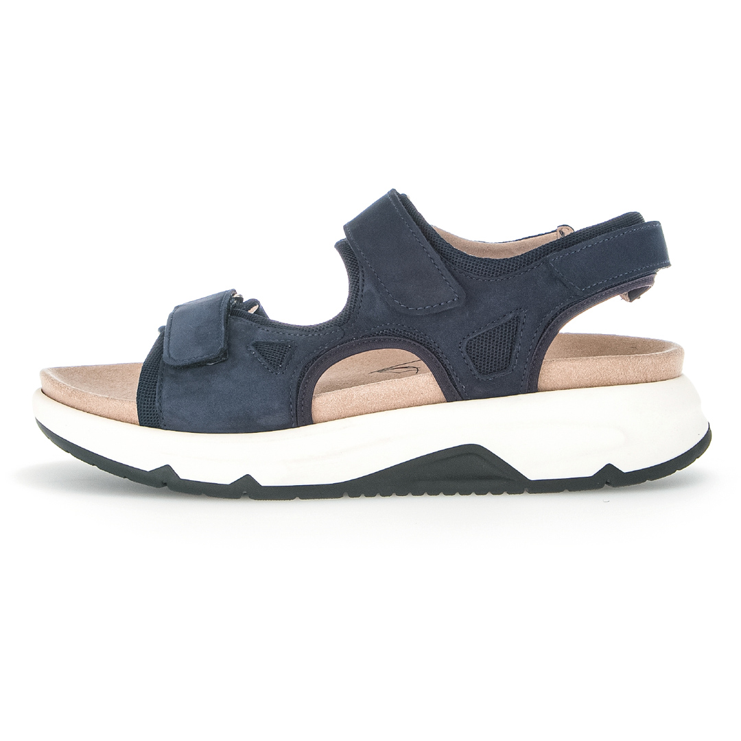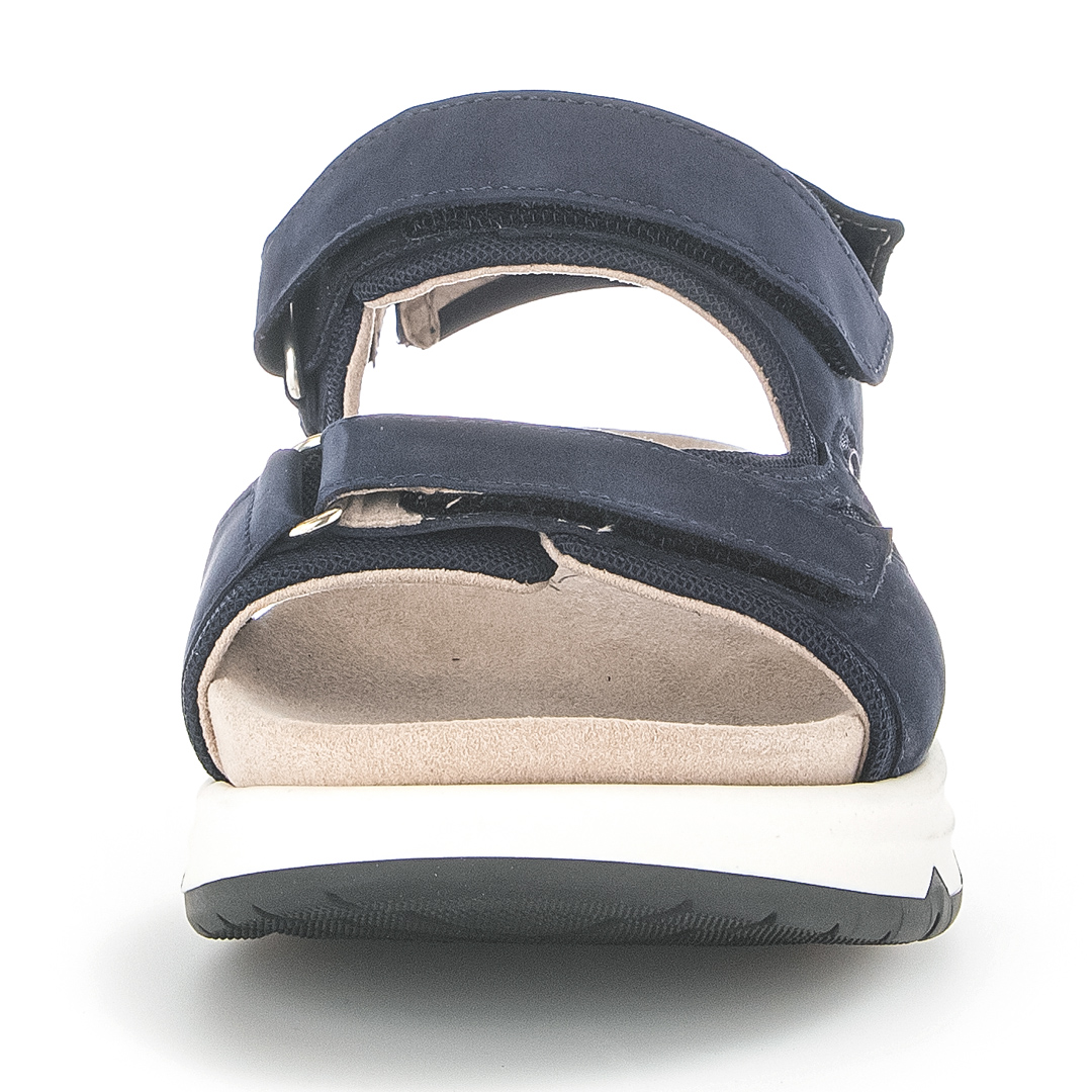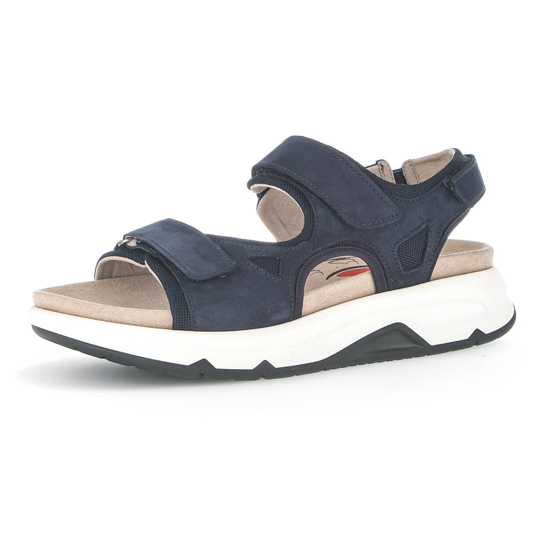 Dámské trekingové sandály značky Gabor v modré barvě kombinují funkčnost s moderním designem. Svršek je vyroben z kombinace kvalitní usně a syntetických materiálů, což zajišťuje odolnost a dlouhou životnost obuvi. Široké pásky přes nárt a kolem kotníku poskytují pevné a pohodlné uchycení chodidla, přičemž zapínání na suchý zip umožňuje snadné obouvání a individuální nastavení. Otevřená špička a pata zajišťují dostatečnou ventilaci, což oceníte během teplých letních dnů. Sandály jsou vybaveny flexibilní a lehkou podešví, která poskytuje vynikající tlumení nárazů a stabilitu na různých površích. Vnitřní stélka je navržena s důrazem na ergonomii, což zvyšuje komfort při delších procházkách či túrách. Díky kombinaci sportovního vzhledu a praktických vlastností jsou tyto sandály ideální volbou pro ženy, které hledají stylovou a zároveň funkční obuv pro outdoorové aktivity i každodenní nošení.