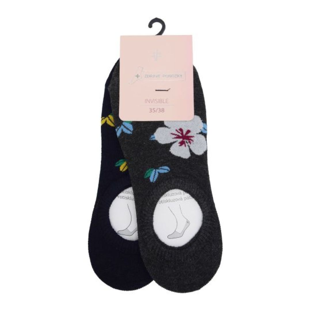 Ponožky jsou vyrobeny z bavlněného materiálu, který je prodyšný a příjemný na nošení. Silikonový proužek v patní části pomáhá zabránit sklouzávání a zajišťuje, že ponožky dobře drží na noze i při chůzi. Díky pohodlnému provedení a funkčním detailům jsou vhodné pro každodenní nošení a ocení je zákaznice, které hledají kombinaci komfortu, praktičnosti a nenápadného designu. Složení: 80% bavlna, 17% polyamid, 3% elastan