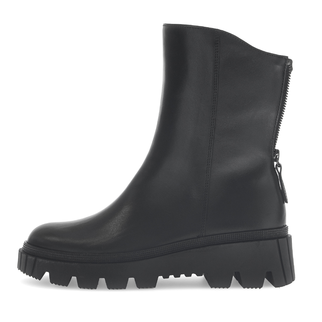 Obuv Gabor kotníková v černém provedení je dámský model, který kombinuje moderní vzhled se stabilním a pohodlným nošením. Svršek z kombinace hladké kůže a materiálu podobného kůži působí elegantně a zároveň nadčasově, takže boty snadno doplní různé outfity – od volnočasových až po smart casual styl. Vyšší konstrukce sahá nad kotník a dodává botám výraznější siluetu. Lehká a stabilní podrážka s plateau profilací poskytuje jistý krok na různých typech povrchů a pomáhá tlumit nárazy při chůzi. Vnitřní podšívka je příjemná na nošení a přispívá k pohodlí i během delšího dne. Tento model je vhodnou volbou pro ženy, které hledají stylovou a pohodlnou obuv s mírně vyšší podrážkou pro každodenní použití.