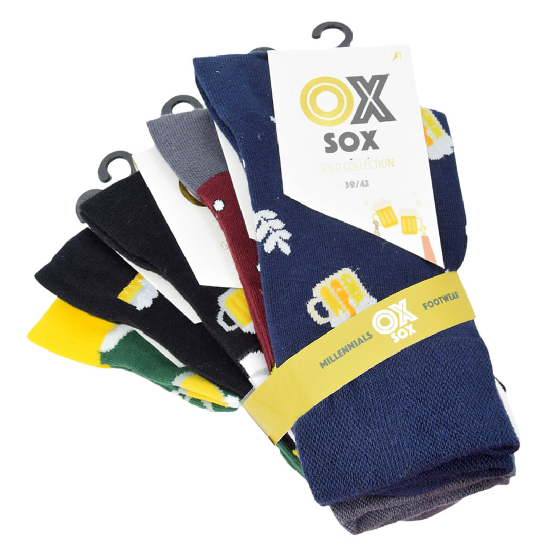Ponožky Olet s pivním motivem z kolekce OXSOX Gold přinášejí do vašeho šatníku hravost a pohodlí. Jsou vyrobeny z kvalitní bavlněné směsi, která zajišťuje měkkost a prodyšnost. Díky elastickému lemu dobře drží na noze, aniž by způsobovaly nepříjemné otlaky. Balení obsahuje pět párů ponožek s různými pivními motivy, které oživí každý outfit.
