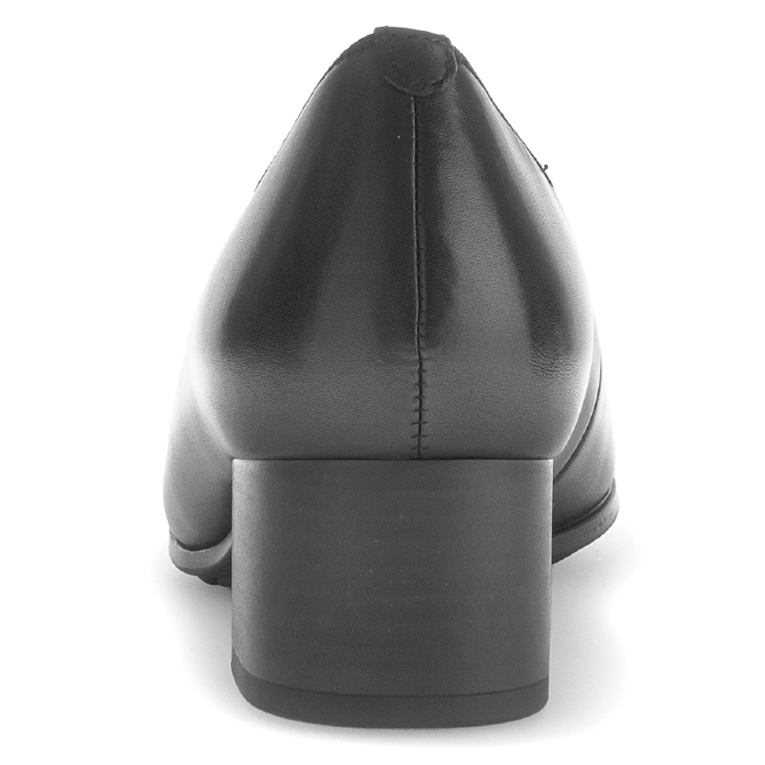 Tyto lodičky jsou vyrobeny z hladké černé kůže, která působí elegantně a univerzálně. Mají kulatou špičku a blokový podpatek vysoký přibližně 4 cm, což poskytuje stabilnější došlap a zároveň vizuálně prodlužuje nohu. Vnitřní část je obložena kůží, což zvyšuje komfort nošení a snižuje pocení. Zpracování je detailní – švy jsou čisté, materiál kvalitní, obuv působí velmi solidním dojmem. Velkou výhodou je širší střih označený jako „H (weit)”, který umožňuje víc prostoru v oblasti špičky a nártu – vhodné pro širší chodidla nebo když preferujete, aby bota netlačila. Dále mají vyjímatelnou stélku s podílem recyklovaných materiálů, což umožňuje vložit vlastní ortopedickou vložku nebo zvětšit objem uvnitř.
