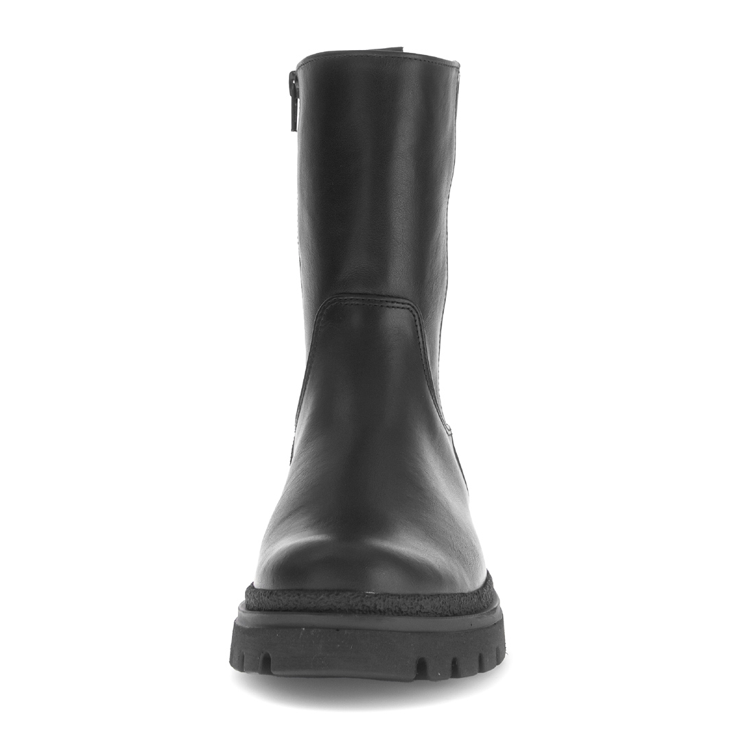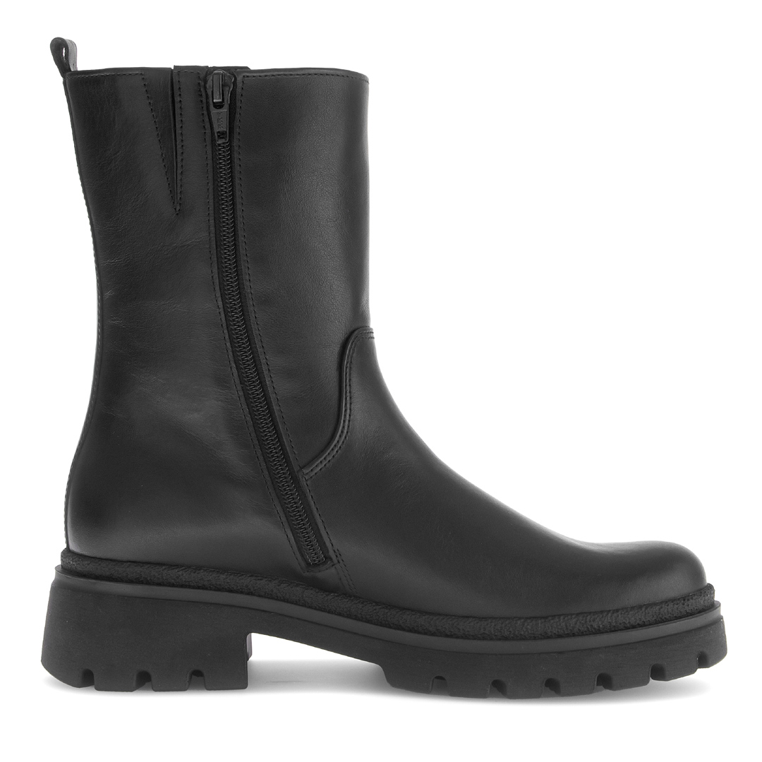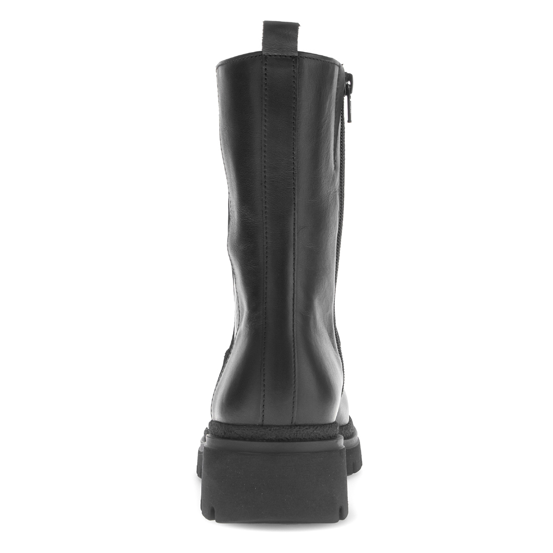 Stylové dámské kotníkové boty Gabor v elegantní černé barvě spojují moderní design s maximálním komfortem. Vyrobené z kvalitní hladké usně doplněné lesklým prvkem na patní části působí sofistikovaně a zároveň nadčasově. Robustní profilovaná podešev zajišťuje stabilitu a pohodlí i při delším nošení, zatímco měkká stélka se přizpůsobí chodidlu. Díky pružným vsadkám se boty snadno nazouvají a perfektně sedí. Tyto boty jsou ideální volbou pro podzimní i zimní období – skvěle doplní jak ležérní džíny, tak elegantní kabát.