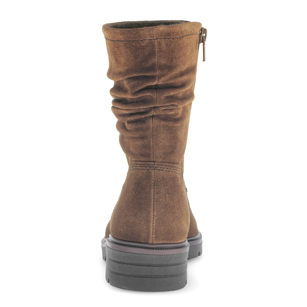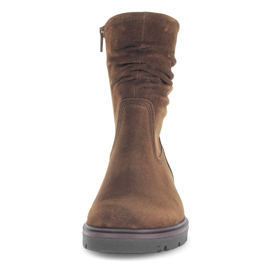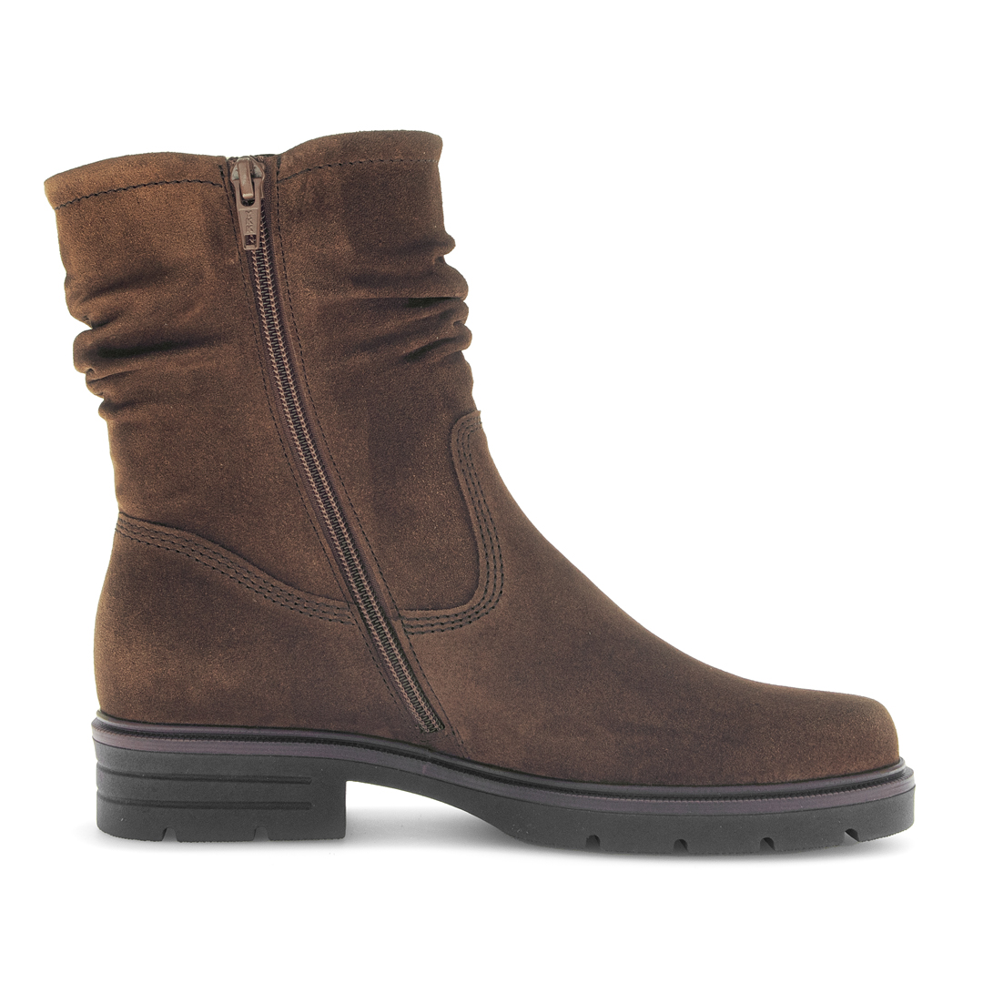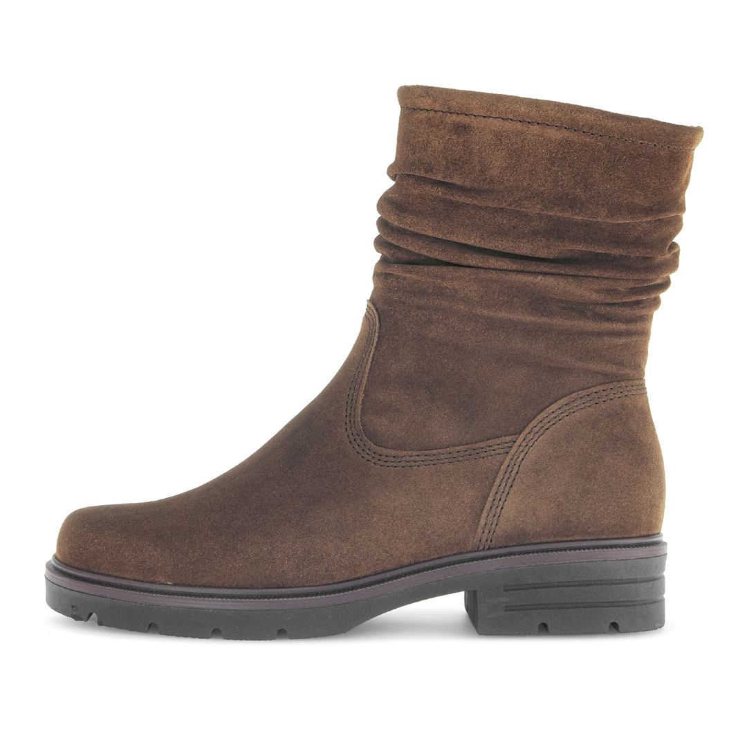 Tato elegantní kotníková obuv od Gabor je vyrobena z hnědé broušené useňe, která jí dodává přírodní a zároveň sofistikovaný vzhled. Vrchní materiál je kůže poškrábaná či zdrsněná, což zvyšuje její vizuální hloubku a jemnost. Model má kulatou špičku a blokový podpatek (blokabsatz), který poskytuje dobré rozložení váhy a stabilitu při chůzi. Uvnitř je textilní podšívka, která zvyšuje komfort nošení. Mezi hlavní přednosti patří vyjímatelná stélka, což umožňuje použití vlastního ortopedického vložky nebo jednoduše pohodlnější údržbu obuvi. Řada BEST Fitting i širší podrážka v oblasti nártu a přední části chodidla naznačují, že bota lépe sedne i při širší noze. Produkt je zhotoven v Evropě a kůže pochází ze zdrojů certifikovaných Leather Working Group, což odráží závazek značky Gabor k environmentální odpovědnosti.