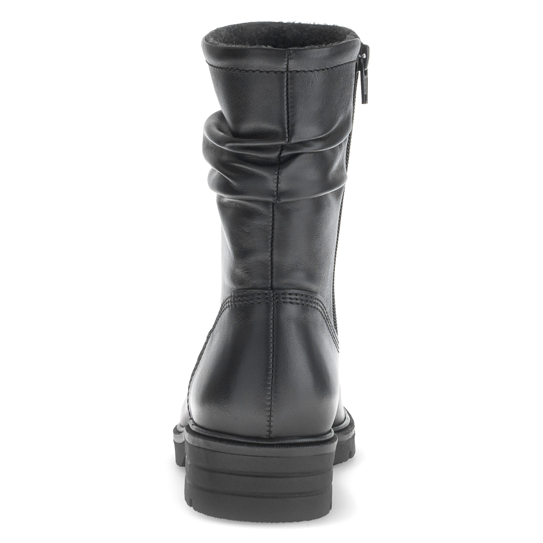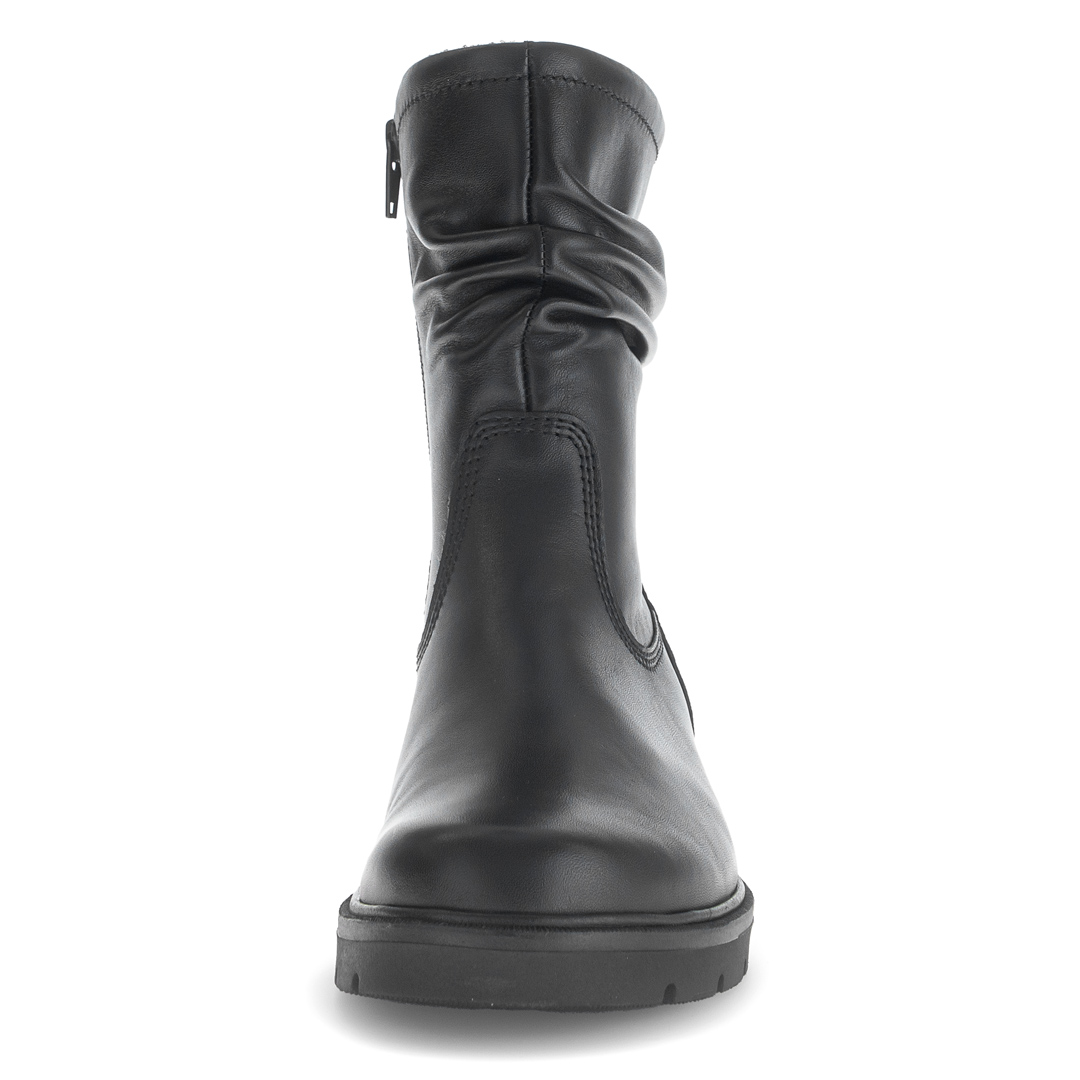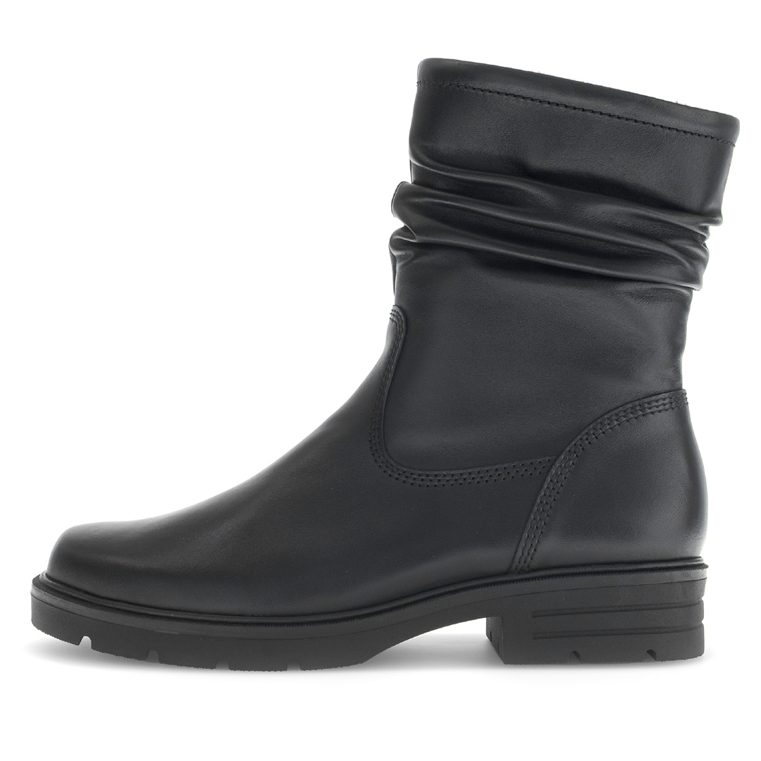 Tato kotníková bota od Gaboru kombinuje klasický vzhled s pečlivým zpracováním a pohodlím. Má hladkou černou kůži jako svrchní materiál, do kterého se promítá elegance a nadčasovost, je decentní a univerzální pro různé styly oblečení. Kulatá špička dodává botě měkčí siluetu a blokový podpatek výšky kolem 4 cm zajišťuje pevnou oporu a stabilní chůzi i na delších trasách. Vnitřní podšívka je textilní, což přispívá k většímu pohodlí a lepšímu klimatu uvnitř boty. Jeden z klíčových prvků je vyjímatelná stélka (vhodná pro vložky), což ocení ti, kdo potřebují úpravu při užívání či preferují osobní vložky. Obuv je vyrobena v Evropě, její kůže pochází z certifikovaných zdrojů podle standardu Leather Working Group. Boty mají normální šíři F – tedy nejsou ani úzké, ani extra rozšířené, což je dobrý kompromis, pokud nepotřebujete výrazně víc prostoru pro nárt či prsty.