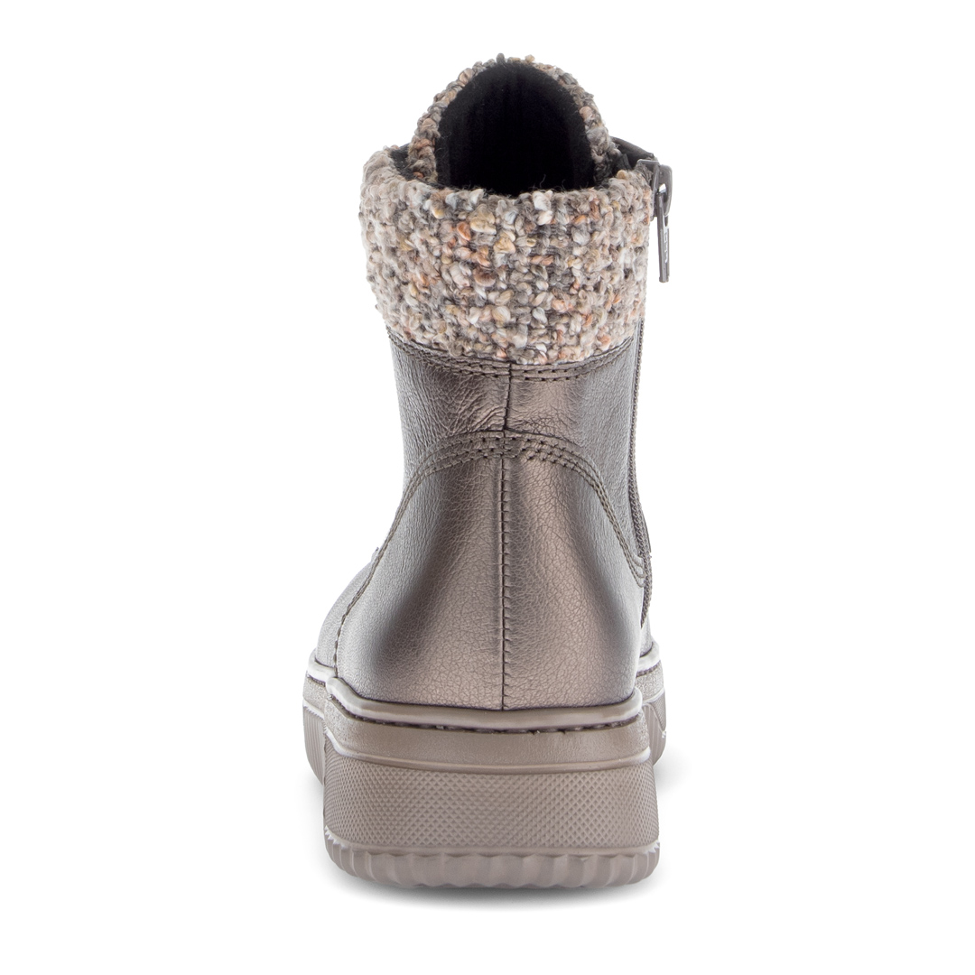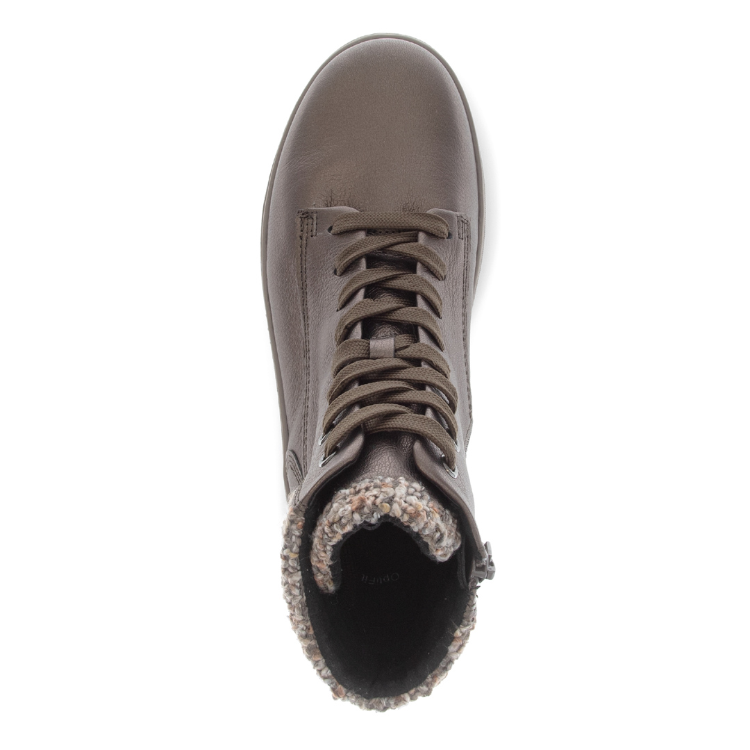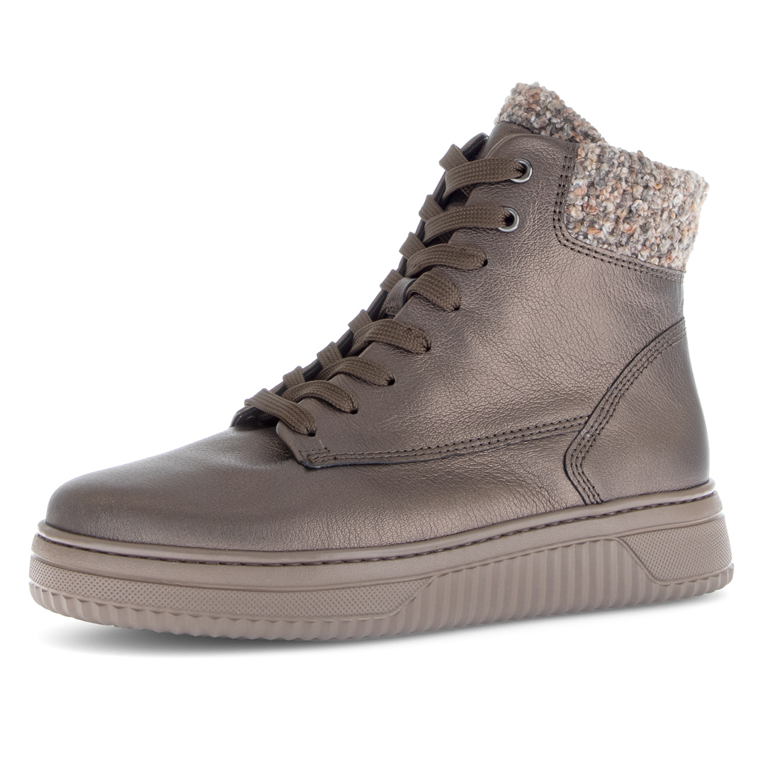 Elegantní dámské kotníkové boty Gabor v hnědo-šedém odstínu představují ideální volbu pro chladnější dny. Vyrobené z vysoce kvalitní hladké usně, nabízejí maximální komfort a dlouhou životnost. Měkký textilní lem kolem kotníku nejen krásně vypadá, ale také zajišťuje příjemné nošení bez otlaků. Praktické šněrování umožňuje dokonalé přizpůsobení noze. Pohodlná vyjímatelná stélka zajišťuje komfort i při celodenním nošení. Lehká flexibilní podešev s jemným vzorkem poskytuje jistý krok a stabilitu. Stylový design a důraz na detail dělají z těchto bot perfektní doplněk pro každodenní nošení – ke kalhotám, džínům i sportovně-elegantním outfitům.