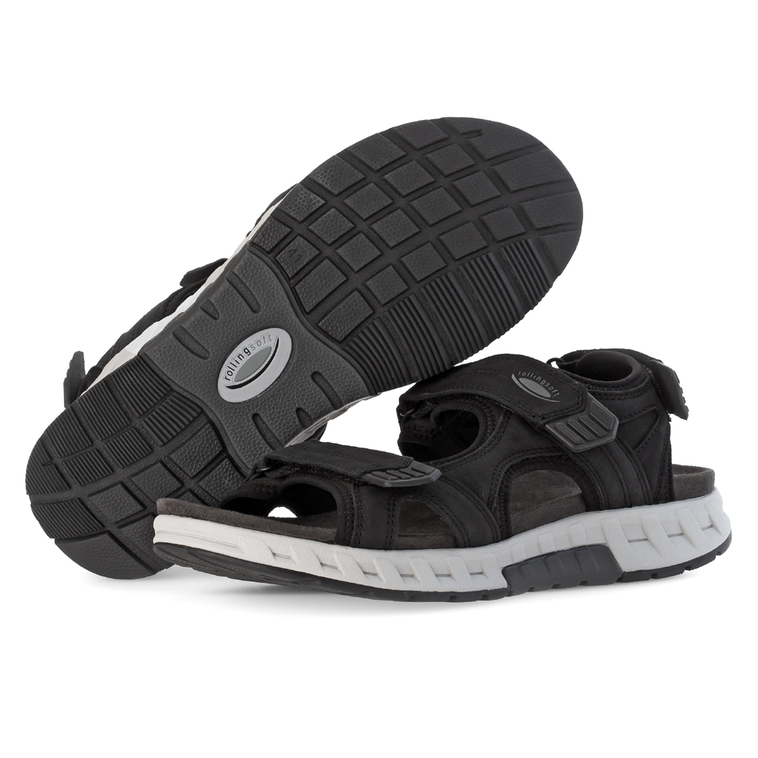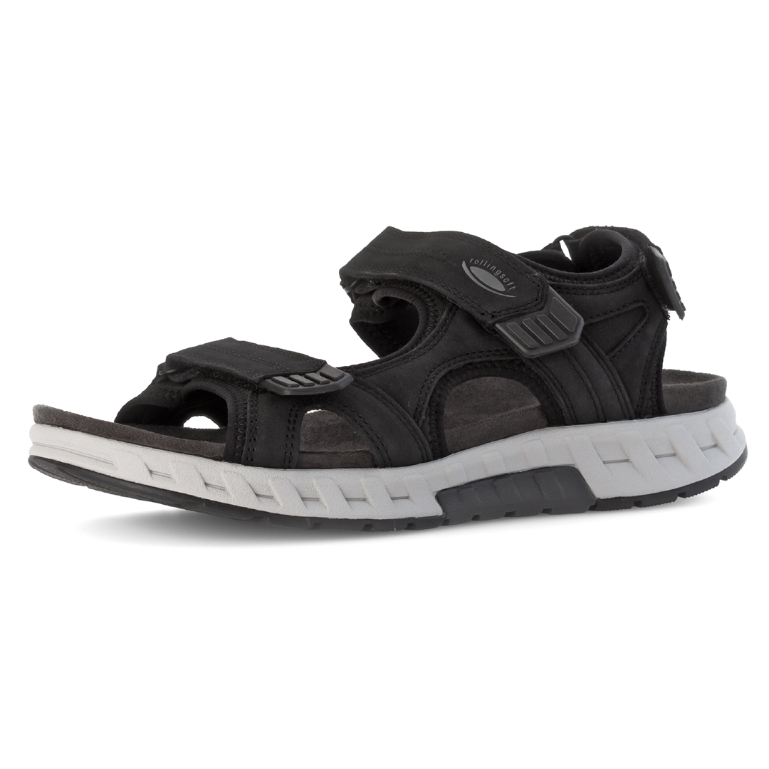 Dámské trekingové sandály Gabor Rollingsoft v černé barvě kombinují kvalitní kůži a textil, což zajišťuje odolnost a pohodlí. Tři nastavitelný suché zipy umožňují individuální přizpůsobení a bezpečné uchycení chodidla. Otevřená špička a pata přispívají k lepší ventilaci během teplých dnů. Sandály jsou vybaveny flexibilní podešví s profilováním, která poskytuje stabilitu na různých površích. Vnitřní stélka je navržena pro maximální pohodlí při chůzi. Díky svému designu a použitým materiálům jsou ideální volbou pro ženy hledající stylovou a funkční obuv pro outdoorové aktivity i každodenní nošení.