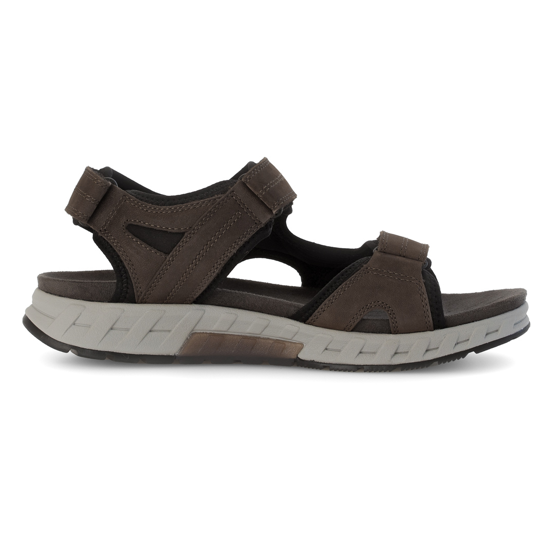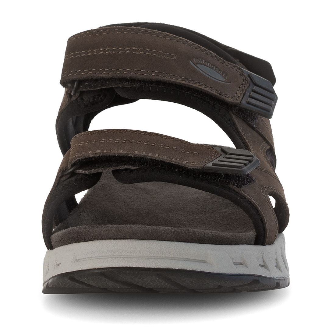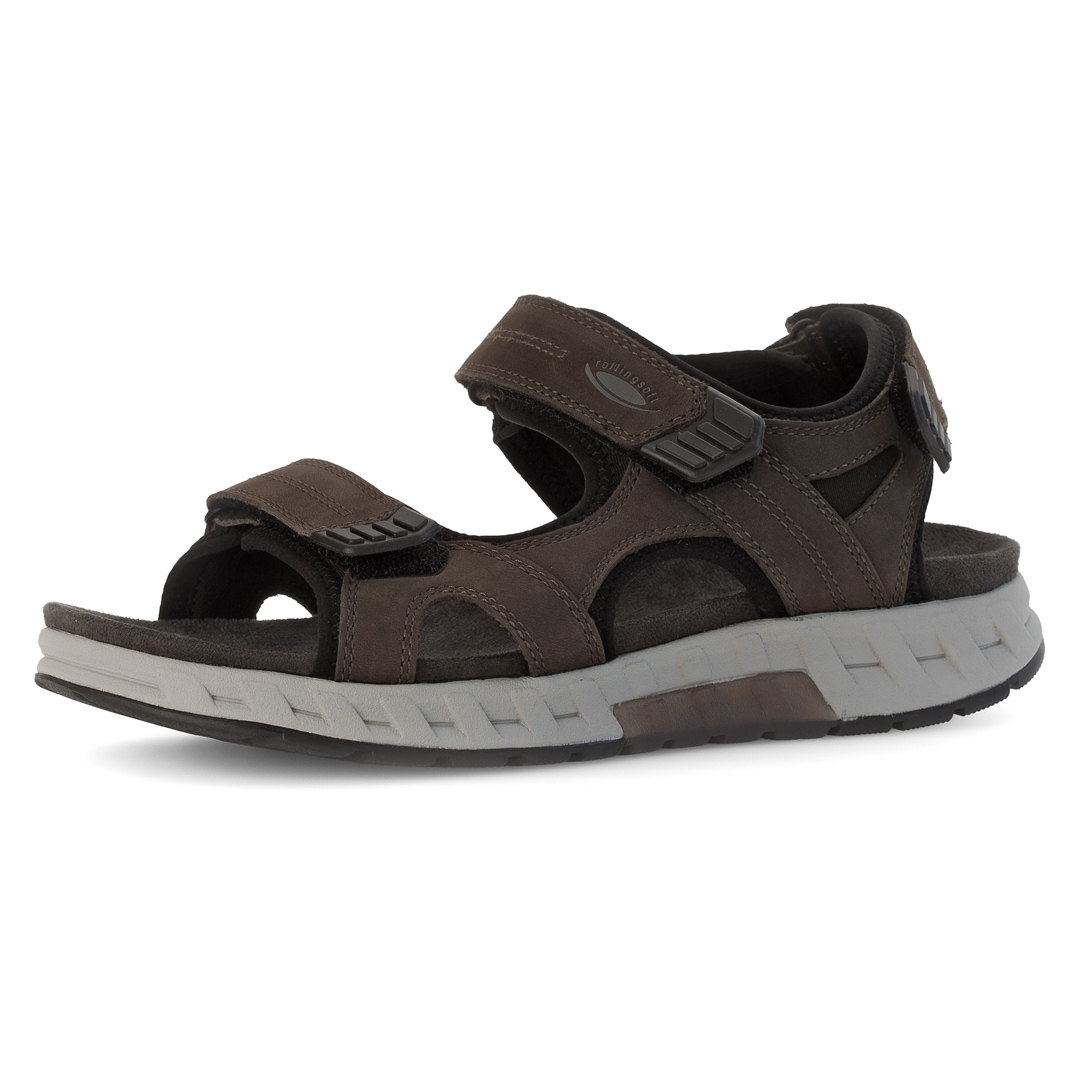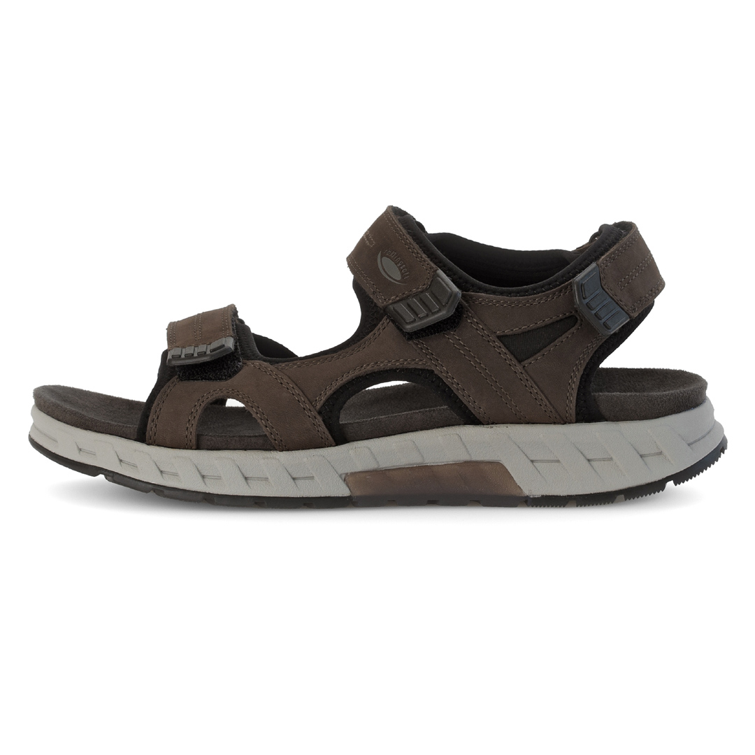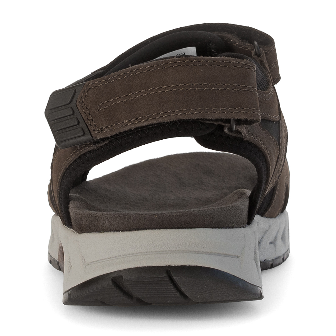 Model Pius Gabor Trekkingsandale v hnědé barvě je vyroben z kombinace kvalitní usně a textilních materiálů, což zajišťuje odolnost a pohodlí. Tři nastavitelný suché zipy umožňují individuální přizpůsobení a bezpečné uchycení chodidla. Otevřená špička a pata přispívají k lepší ventilaci během teplých dnů. Sandály jsou vybaveny flexibilní podešví s profilováním, která poskytuje stabilitu na různých površích. Vnitřní stélka je navržena pro maximální pohodlí při chůzi. Díky svému designu a použitým materiálům jsou ideální volbou pro muže hledající stylovou a funkční obuv pro outdoorové aktivity i každodenní nošení.