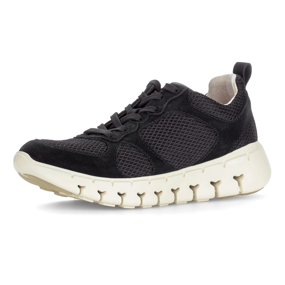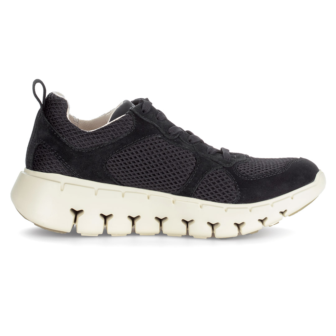 Tento černý sneaker od značky Gabor představuje elegantní a zároveň funkční volbu pro každodenní nošení. Svrchní materiál je pečlivě sestaven z kvalitní hladké usně, která zajišťuje odolnost vůči opotřebení a podporuje přirozenou flexibilitu při chůzi. Nízký střih a klasický tvar s kulatou špičkou poskytují dostatek prostoru pro prsty a zlepšují celkový komfort během delších procházek i běžného nošení ve městě nebo ve volném čase. Design obuvi zůstává nadčasový a snadno se kombinuje s různými styly oblečení. Vnitřní část obuvi je vybavena měkkou podšívkou, která zvyšuje prodyšnost a přispívá k příjemnému pocitu na noze i při celodenním nošení. Vyjímatelná stélka umožňuje úpravu obuvi dle individuálních potřeb, například vložení vlastních ortopedických nebo komfortních stélek, což ocení zákaznice s nároky na speciální podporu chodidla. Syntetická podešev zajišťuje dobrou přilnavost na různých površích a poskytuje stabilní a pohodlný krok bez ohledu na to, zda jdete na procházku, nákupy nebo do práce.