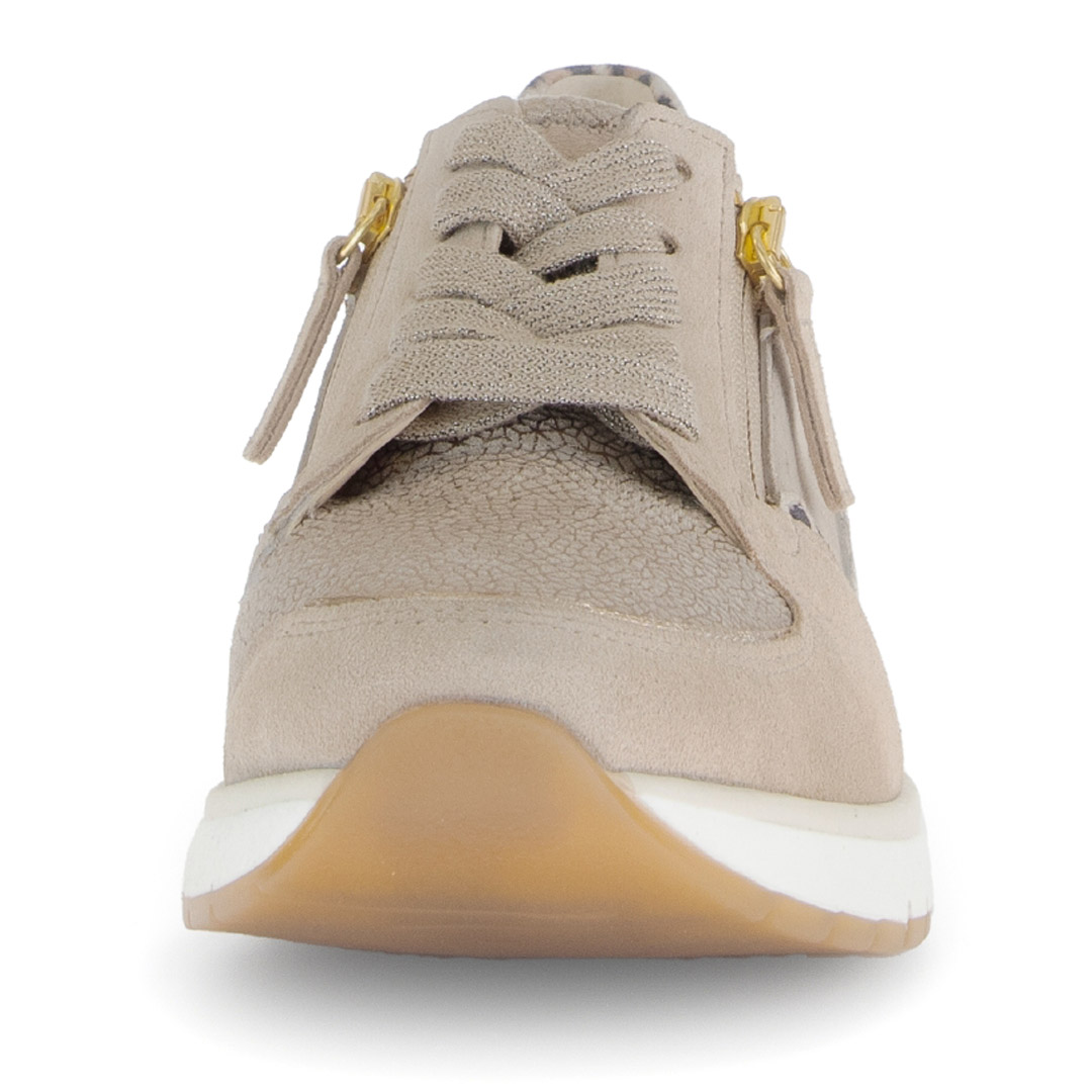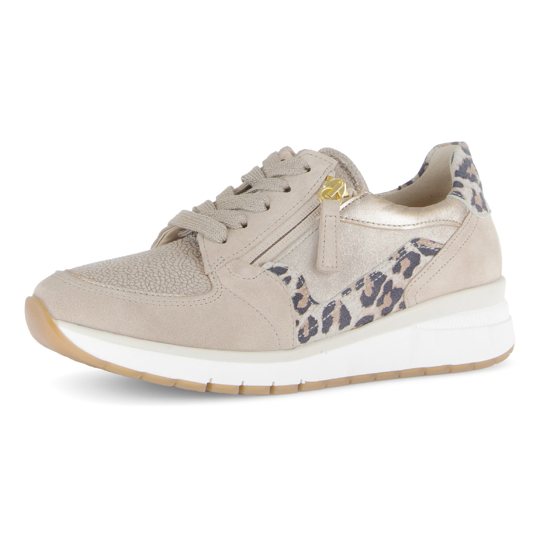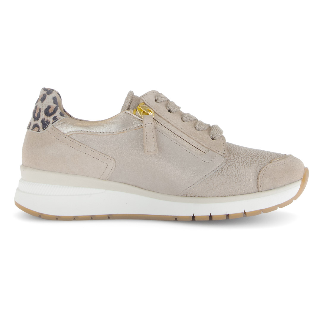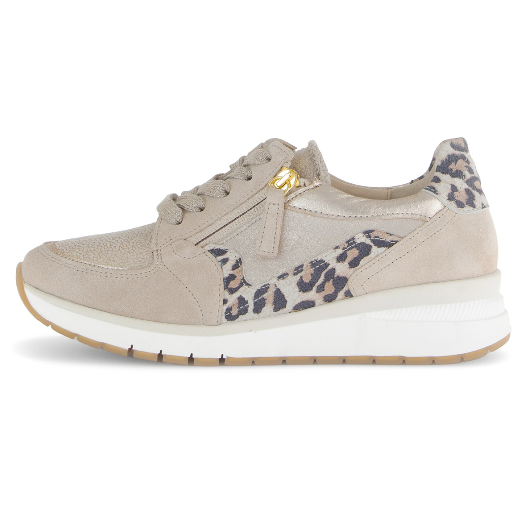 Gabor Ženy tenisky béžová jsou moderní vycházková obuv od renomované značky Gabor, navržena pro ženy, které hledají kombinaci stylu a každodenního pohodlí. Model se vyznačuje kvalitním zpracováním a elegantním designem, který se hodí k široké škále outfitů – od volnočasového nošení až po městské výlety. Díky použití kombinovaného materiálu ve svrchní části je obuv odolná vůči opotřebení a zároveň dostatečně flexibilní, což podporuje přirozený pohyb chodidla při chůzi. Kombinovaný materiál často zahrnuje prvky hladké kůže i textilní nebo syntetické komponenty, které zlepšují prodyšnost a estetický dojem. Uvnitř obuvi je použit komfortní systém stélky, který zlepšuje tlumení došlapu a celkový pocit pohodlí při delším nošení. Vnitřní podšívka a struktura stélky jsou navrženy tak, aby snižovaly únavu chodidla, a díky vyjímatelné vložce je možné obuv upravit i pro použití vlastních ortopedických vložek. Podešev je z odolné syntetické gumy, která zajišťuje stabilní a bezpečný krok na různých površích. Tento model tak splňuje požadavky na komfortní obuv pro každodenní použití a zároveň přináší moderní vzhled a kvalitní materiálové řešení typické pro značku Gabor.