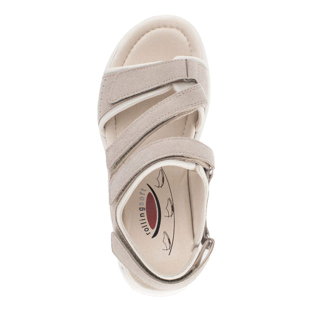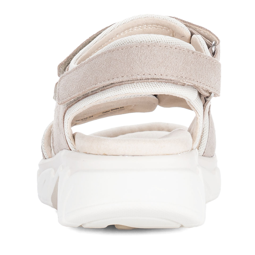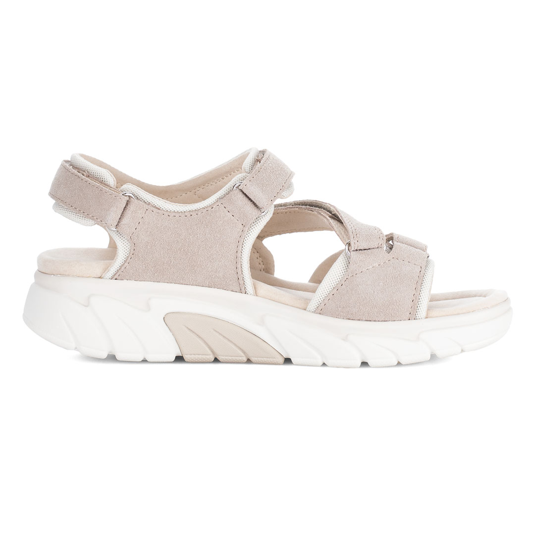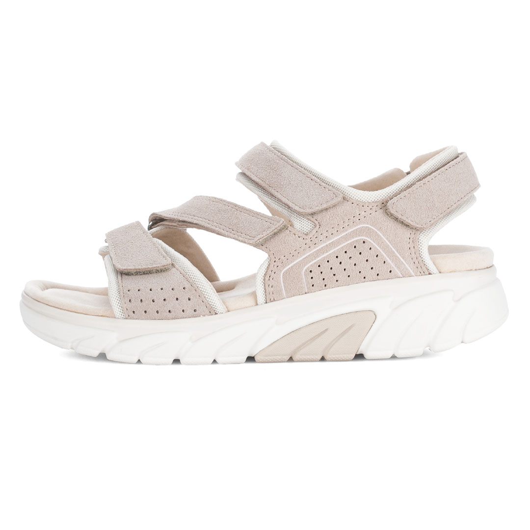 Dámské trekové sandály Gabor v béžovém provedení představují ideální kombinaci sportovního komfortu a moderního designu, vhodnou pro každodenní nošení i aktivní pohyb. Svršek je vyroben z kvalitní broušené usně, což zajišťuje optimální rovnováhu mezi odolností, prodyšností a flexibilitou. Vnitřní část je kožená, včetně stélky, která podporuje příjemné klima uvnitř obuvi a zvyšuje komfort při delším nošení. Díky více páskům se zapínáním na suchý zip lze obuv snadno přizpůsobit tvaru chodidla a zajistit stabilní a bezpečné usazení. Lehká konstrukce je doplněna o flexibilní syntetickou podešev, která poskytuje dobré tlumení nárazů a jistý krok na různých typech povrchu. Ergonomické řešení podporuje přirozený pohyb chodidla a přispívá ke snížení únavy i při celodenním nošení. Komfortní střih (např. šířka G) nabízí dostatek prostoru v oblasti prstů, což oceníte zejména při delších procházkách nebo cestování. Model Gabor Trekkingsandale je ideální volbou pro ženy, které hledají kvalitní, pohodlnou a univerzální letní obuv vhodnou do města i lehčího terénu.