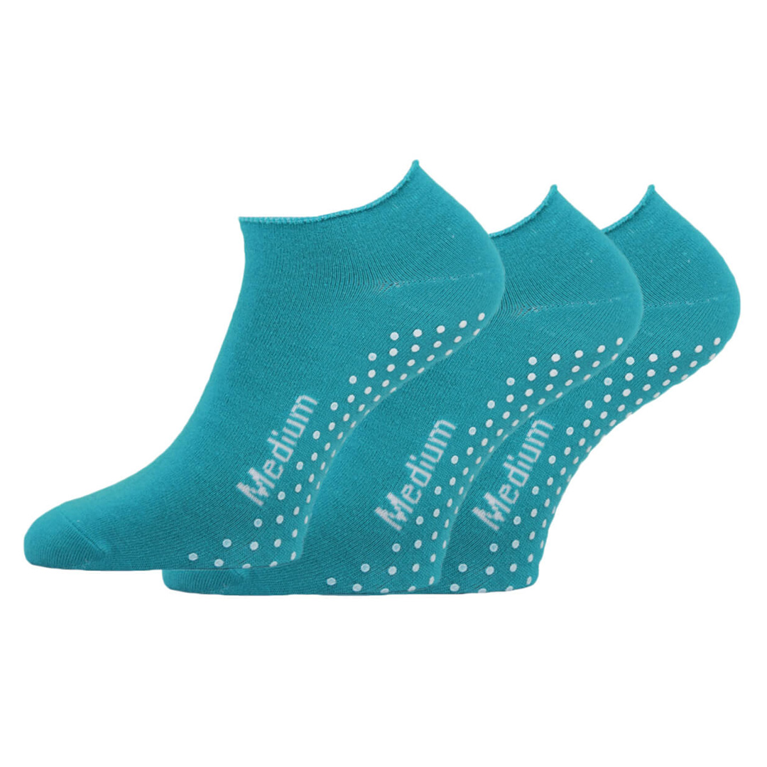 Dámské kotníkové zdravotní ponožky bez gumiček v tyrkysové barvě jsou navrženy pro maximální pohodlí při každodenním nošení. Ponožky jsou vyrobeny převážně z akrylového vlákna, které je příjemné na dotek, dobře drží tvar a zajišťuje komfort při celodenním nošení. Materiálové složení tvoří přibližně 85 % akryl, 12 % spandex a 3 % elastan, díky čemuž jsou ponožky velmi pružné, dobře se přizpůsobují chodidlu a zároveň zůstávají lehké a prodyšné. Kotníkové provedení je ideální zejména pro teplejší období nebo pro nošení do sportovní a volnočasové obuvi. Komfort při nošení zvyšuje ruličkový lem bez gumiček, který nohu nestahuje a nezpůsobuje nepříjemné otlaky, což ocení i osoby s citlivými nebo oteklými nohami. Ponožky jsou doplněny o protiskluzovou úpravu na chodidle pro lepší stabilitu při chůzi. Plochý šev v oblasti špičky minimalizuje tlak v obuvi a zesílená pata i špička zvyšují jejich odolnost a životnost. Díky své elasticitě jsou ponožky velmi pohodlné, dobře drží na noze a zároveň poskytují dostatek volnosti při pohybu.