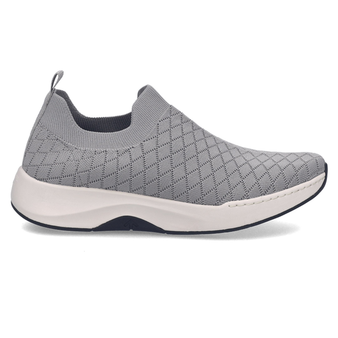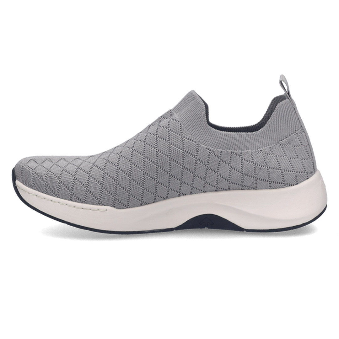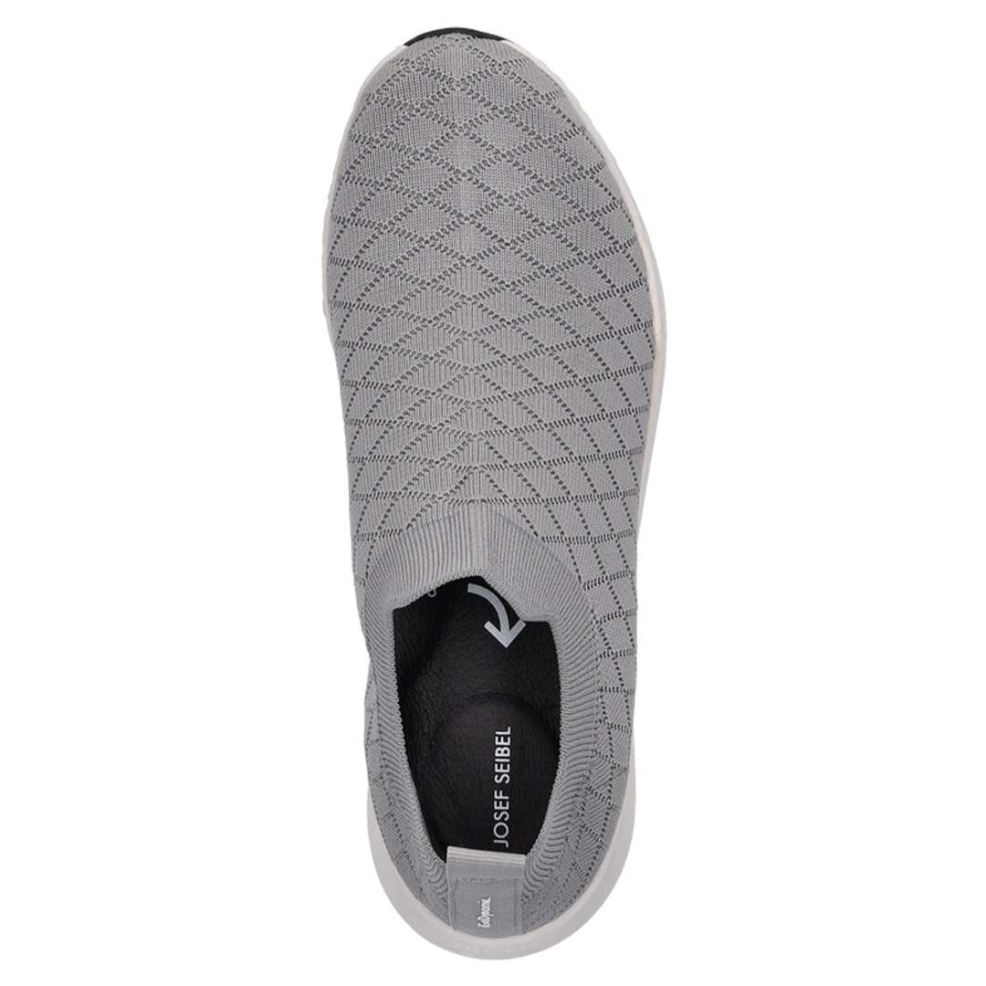 Dámské tenisky Josef Seibel Elli-11 v elegantním šedém provedení spojují moderní sportovní vzhled s vysokým komfortem pro každodenní nošení. Svršek obuvi je z kvalitního textilního materiálu doplněného o kožené části, které zajišťují příjemnou prodyšnost, odolnost a komfort na celý den. Obuv není zateplená, je tedy vhodná především pro jarní, letní i podzimní dny. Vnitřní podšívka je měkká a příjemná, stélka je anatomicky tvarovaná a vyjímatelná, což usnadňuje údržbu i možnost doplnění vlastních ortopedických vložek. Podešev je vyrobena z lehkého a pružného syntetického materiálu s protiskluzovou úpravou, která poskytuje stabilní došlap a dobré tlumení nárazů při chůzi. Opatek je mírně zpevněný a přispívá ke stabilitě paty a celkovému pohodlí chodidla. Tvar špičky je kulatý a poskytuje dostatek prostoru prstům, šířka obuvi odpovídá standardnímu dámskému střihu. Tenisky nejsou voděodolné, proto se doporučuje vyhnout se dlouhodobému kontaktu s vlhkostí. Pro zachování vzhledu a funkčních vlastností se doporučuje pravidelné čištění měkkým hadříkem a ošetření přípravky určenými na kombinaci textilních a kožených materiálů.