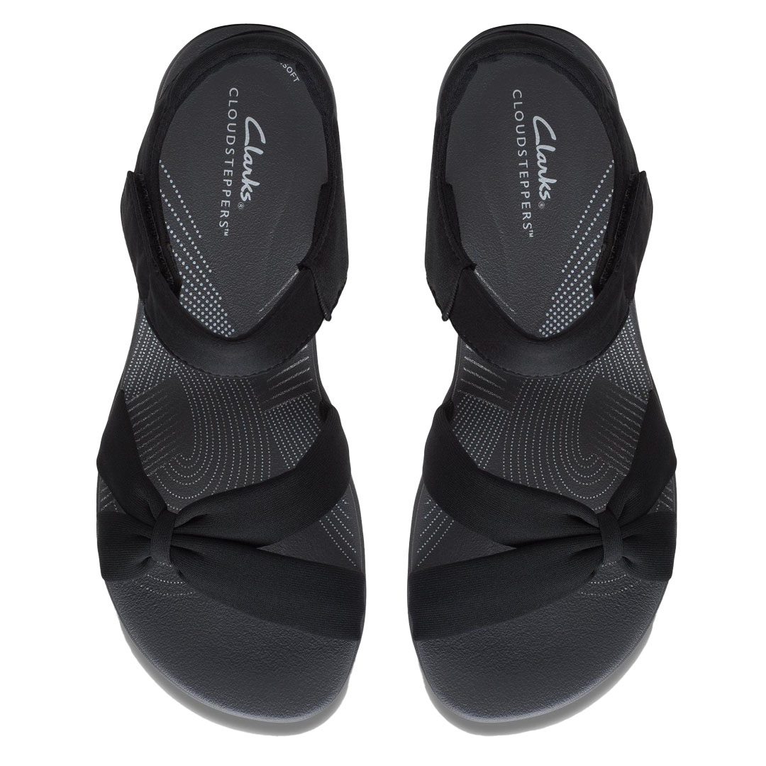 Lehký a prodyšný textilní svršek s měkkým uzlem na nártu dodává obuvi ženský vzhled Nastavitelný pásek na suchý zip kolem kotníku zajistí bezpečné uchycení a snadné obouvání Technologie Clarks Cloudsteppers™ – ultra měkká stélka pro maximální pohodlí a tlumení nárazů Lehká a flexibilní podrážka s mírným klínovým podpatkem pro elegantní siluetu bez kompromisů v pohodlí Ideální volba na letní procházky, cestování nebo volný čas