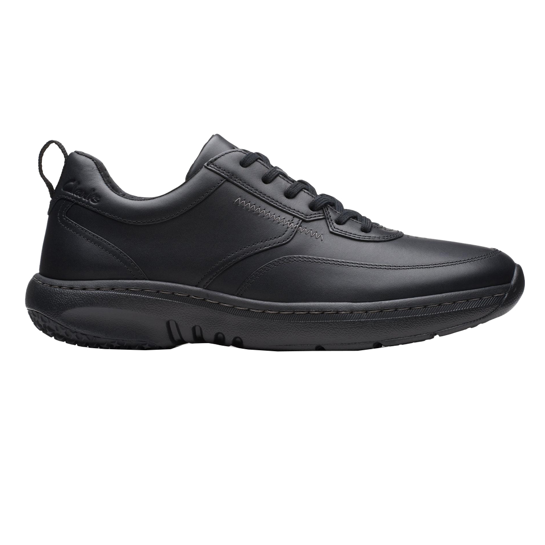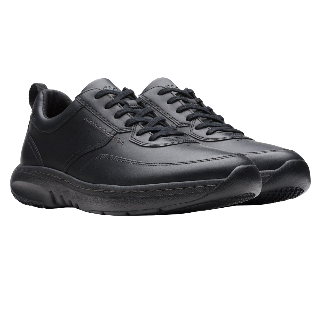 Clarks Pro Lace jsou pracovní tenisky navržené pro náročné pracovní podmínky, které spojují odolnost, pohodlí a moderní design. Svršek je vyroben z kvalitní černé kůže, která je odolná a snadno se udržuje, což zajišťuje dlouhou životnost obuvi. Prodyšná textilní podšívka pomáhá udržet nohy suché a pohodlné během celého dne. Tyto tenisky jsou vybaveny anatomickou stélkou Contour Cushion, která poskytuje vynikající polstrování a cílenou podporu pro chodidlo, čímž zajišťuje komfort při dlouhodobém nošení. Pro optimální stabilitu a bezpečnost mají Clarks Pro Lace flexibilní a lehkou podešev z EVA materiálu, která tlumí nárazy a umožňuje přirozený pohyb nohy. Certifikovaná protiskluzová gumová podrážka, testovaná ve výzkumném ústavu SATRA, poskytuje bezpečnost na různých površích. Díky svému ergonomickému designu a kvalitním materiálům jsou tyto tenisky ideální volbou pro každodenní pracovní využití, kde je potřeba kombinovat pohodlí, bezpečnost a odolnost.